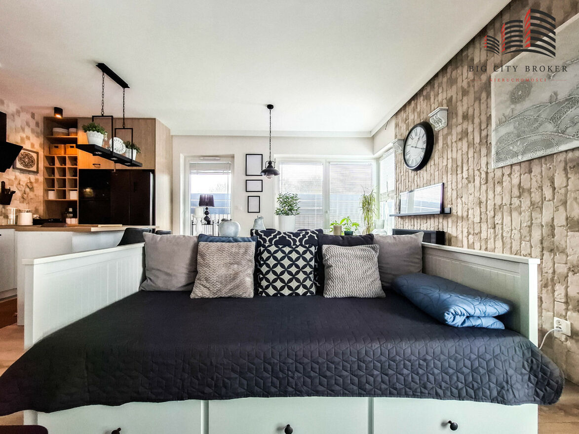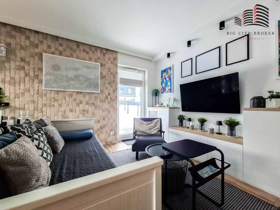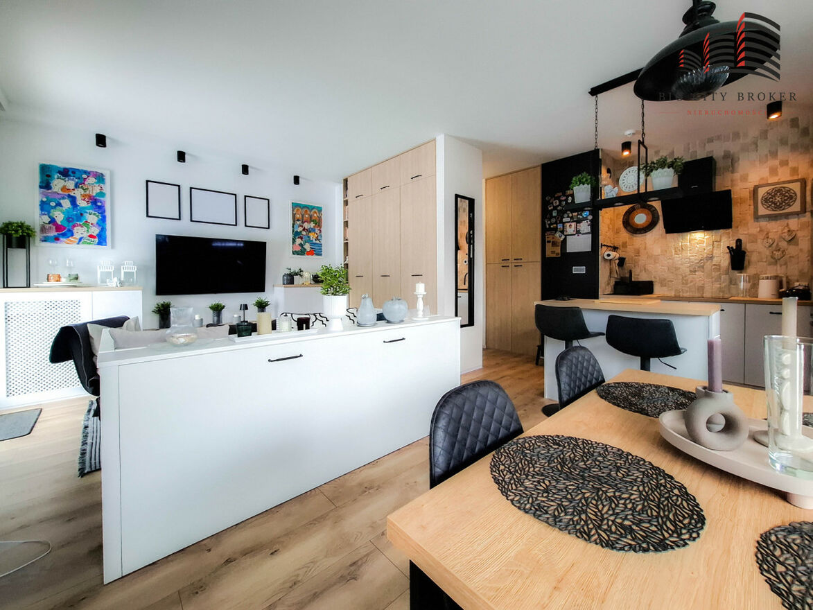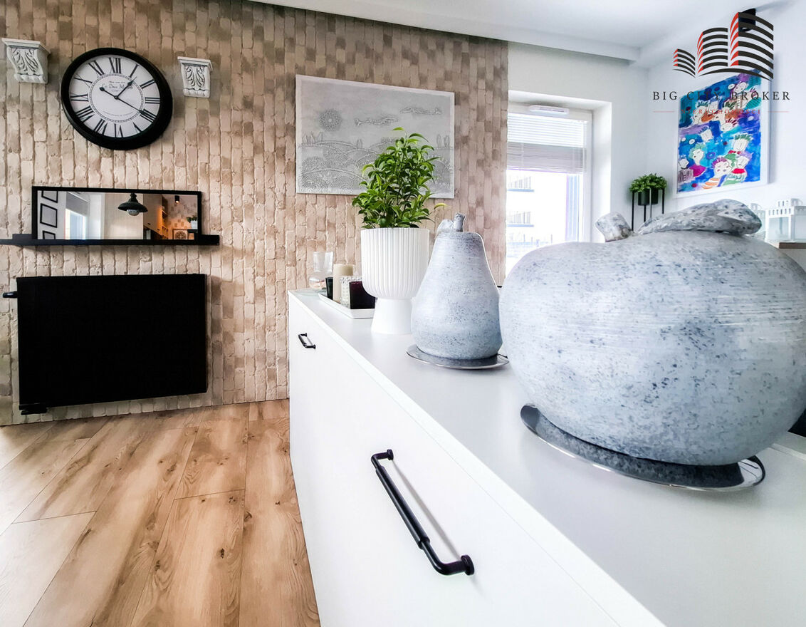 Wnętrze wykończone zostało w nowoczesnym stylu, a mieszkanie sprzedawane jest z pełnym wyposażeniem - meblami oraz sprzętem AGD, co pozwala na natychmiastowe wprowadzenie się bez dodatkowych nakładów finansowych.