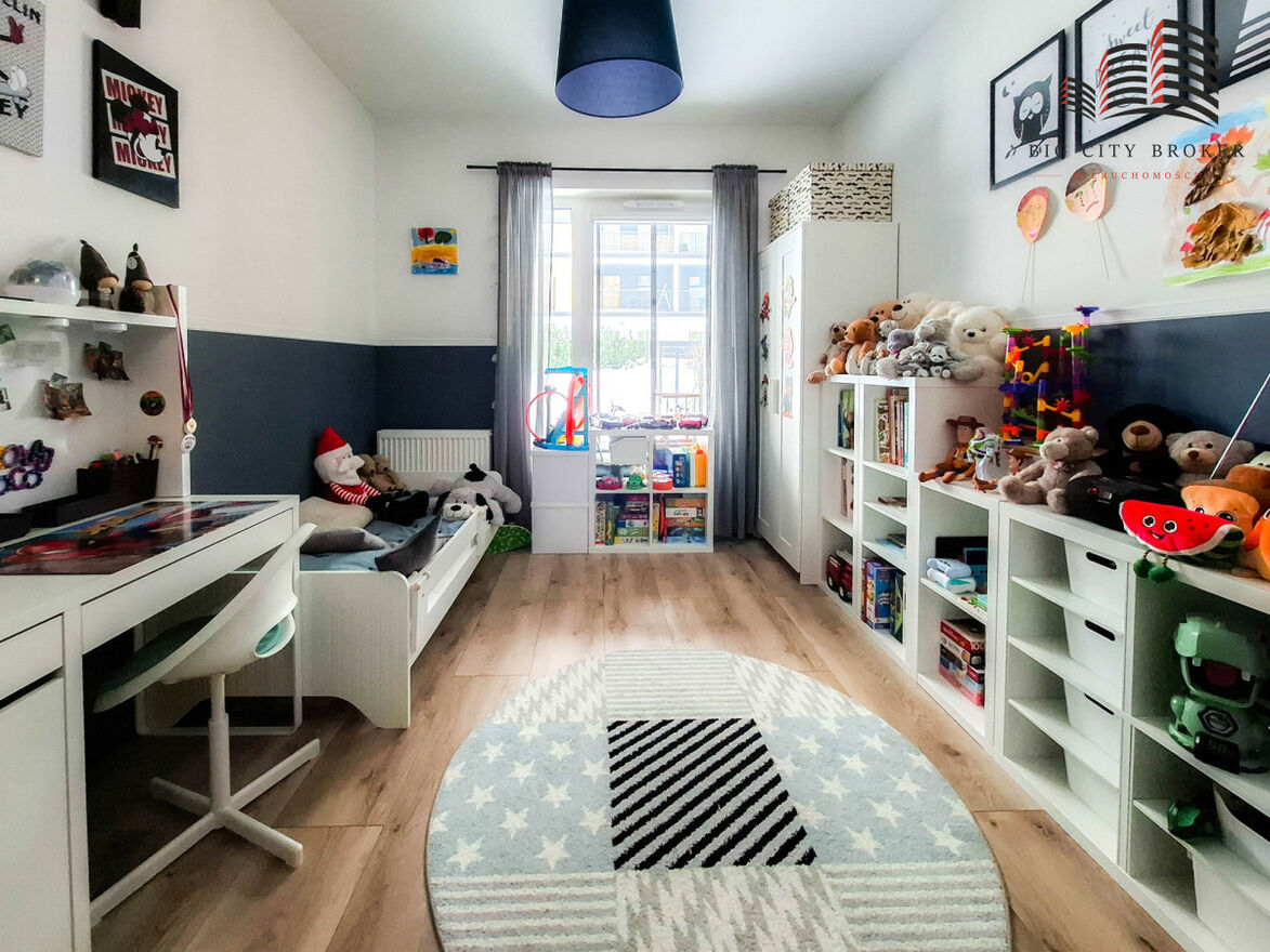 Lokal o powierzchni 57,57 m² został funkcjonalnie zaprojektowany - pierwotnie 3-pokojowy, obecnie oferuje przestronną część dzienną z salonem, aneksem kuchennym i jadalnią tworzącymi spójną, otwartą przestrzeń. Z salonu, jadalni oraz pokoju dziecięcego prowadzą okna balkonowe z bezpośrednim wyjściem do ogrodu, który stanowi idealne miejsce do wypoczynku i spotkań na świeżym powietrzu.