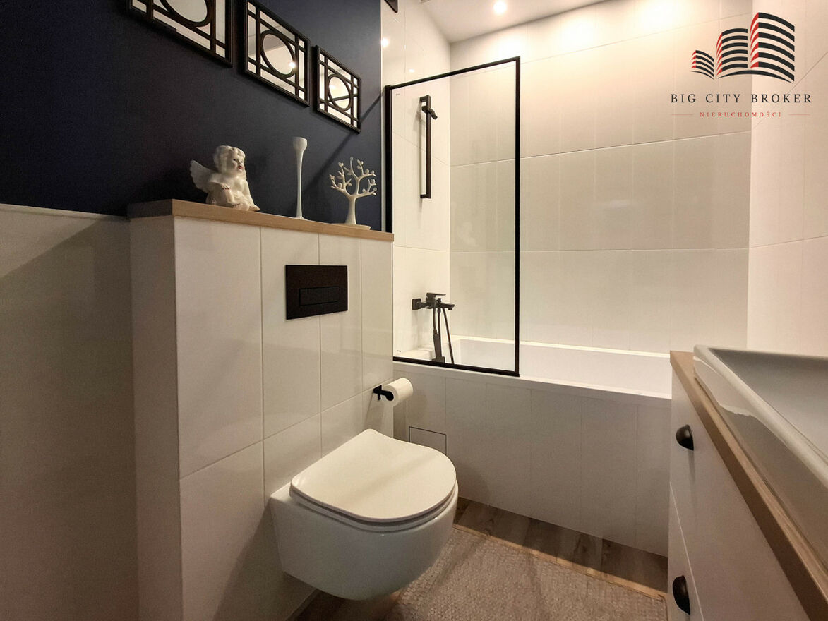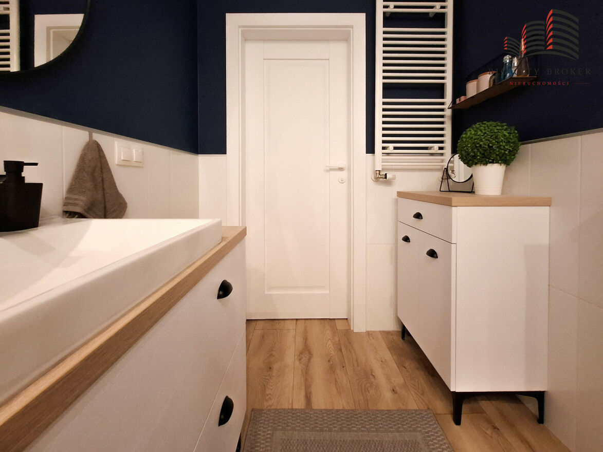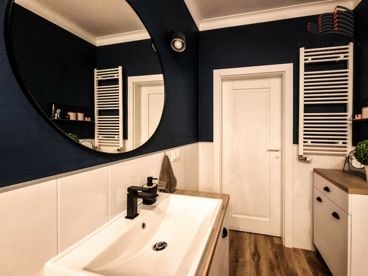 W mieszkaniu znajduje się łazienka z WC oraz oddzielna garderoba - pomieszczenie pierwotnie przewidziane jako dodatkowa toaleta. Wszystkie instalacje zostały zachowane, co daje możliwość łatwej zmiany aranżacji według potrzeb przyszłego właściciela.