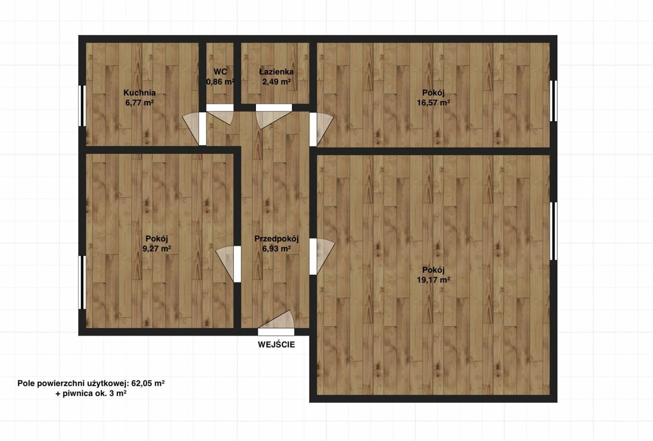 Na sprzedaż funkcjonalne, trzypokojowe mieszkanie o powierzchni 62,05 m2, zlokalizowane na 3. piętrze w niskim bloku z cegły z lat 60. Budynek po termomodernizacji, z domofonem, klatka zadbana - tylko dwa mieszkania na piętrze. Świetna lokalizacja w cichej, zielonej części Bronowic, z pełnym zapleczem handlowo-usługowym i doskonałą komunikacją z centrum.Rozkład pomieszczeń: