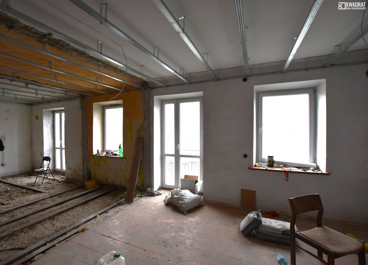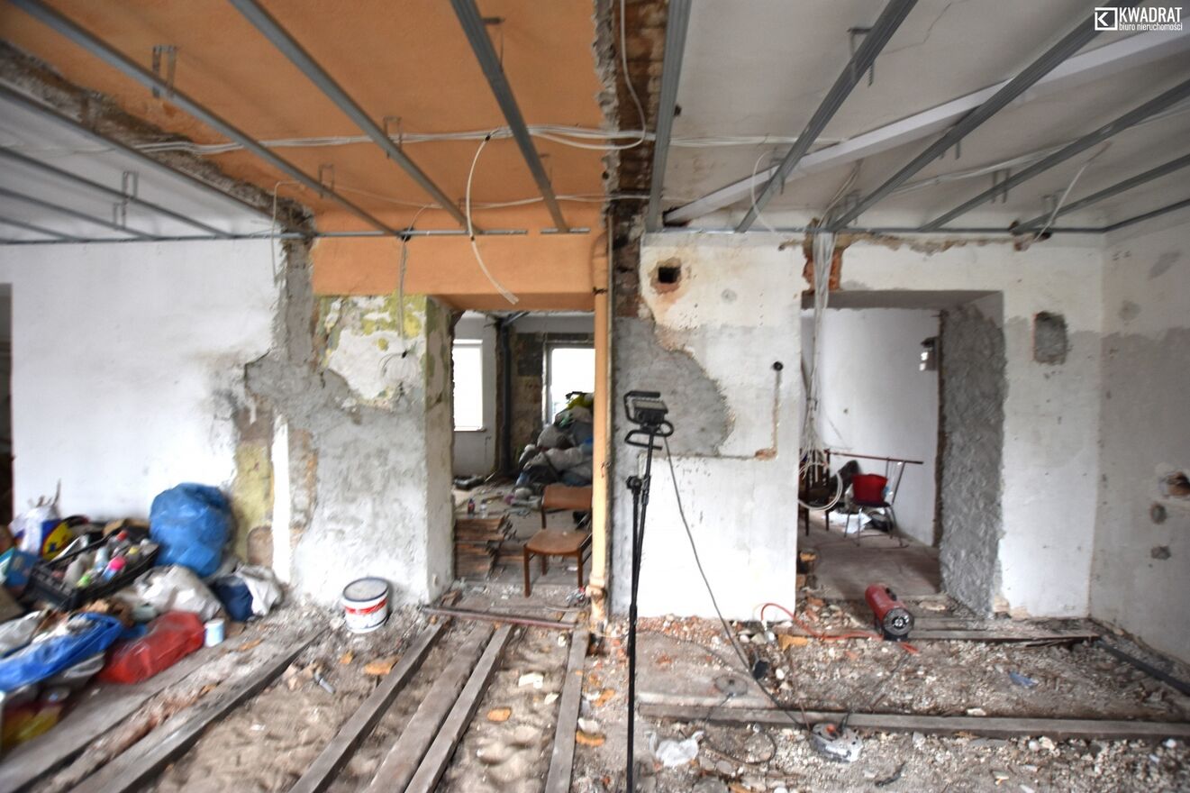W lokalach rozpoczęty jest remont,wyburzone zostały ścianki działowe, zdemontowano piece kaflowe, podwieszono stelaż pod sufity, rozprowadzono instalację elektryczną pod oświetlenie.