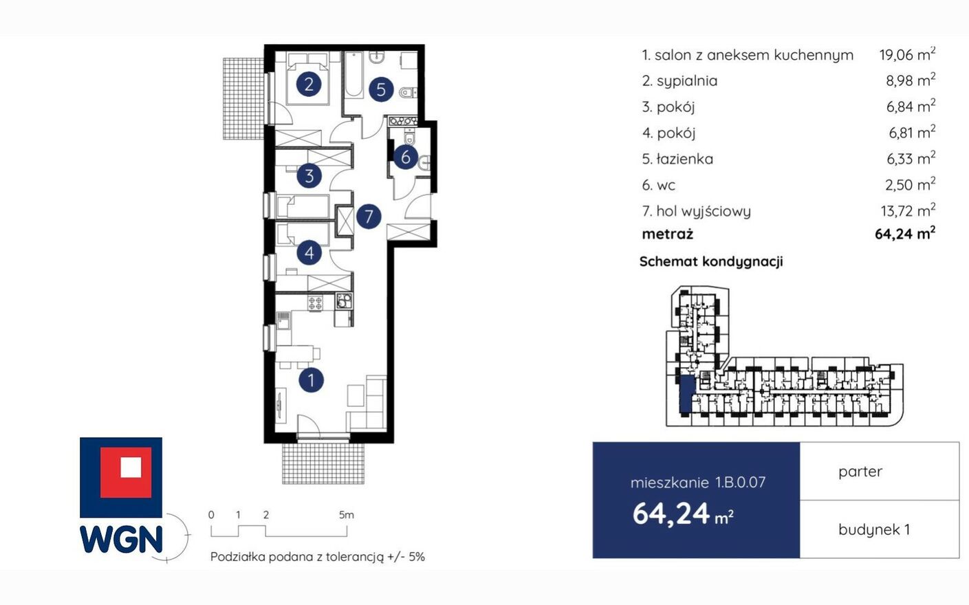 Mieszkanie o pow. 64,24 m2, w tym: