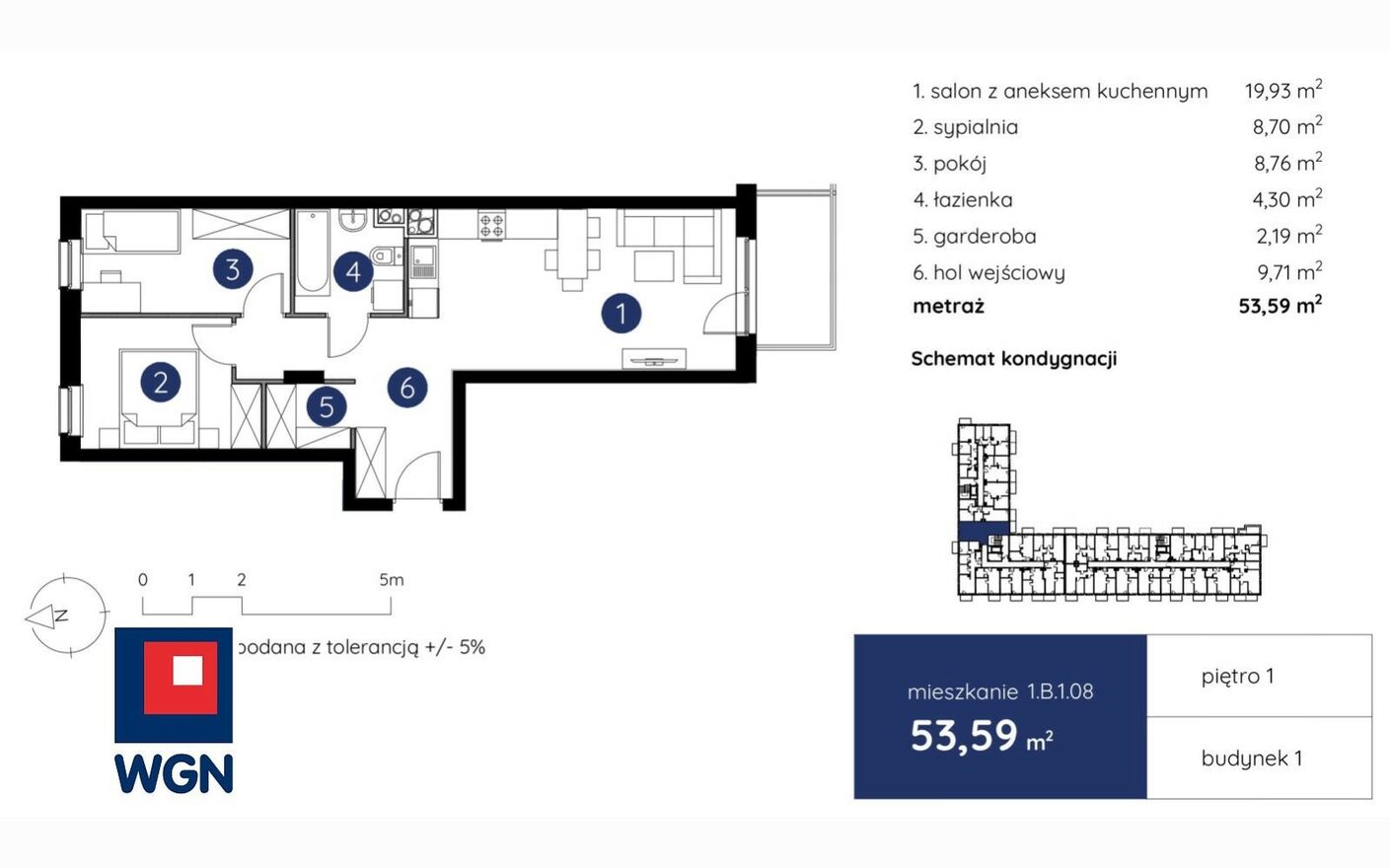 Mieszkanie o pow. 53,59 m2, w tym: