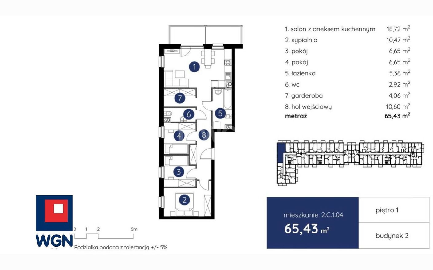 Mieszkanie o pow. 65,43 m2, w tym: