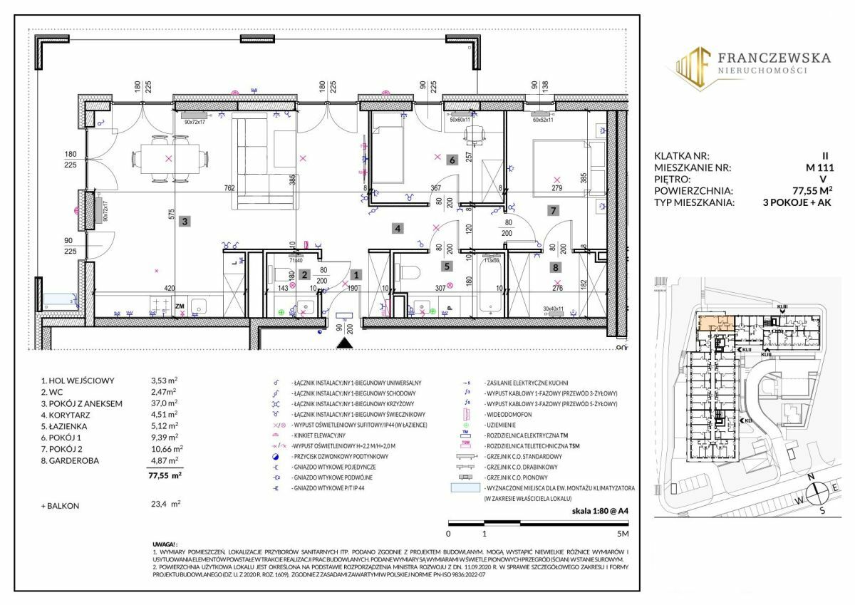 Trzypokojowe mieszkanie o powierzchni 77,55 m2 na 5 piętrze w 7-piętrowym budynku na nowoczesnym osiedlu na Czechowie w Lublinie.To idealna propozycja dla osób szukających komfortowego mieszkania w spokojnej, zielonej okolicy z doskonałym dostępem do miejskiej infrastruktury.