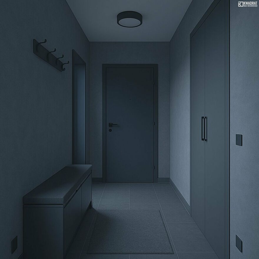 - Przedpokoju, który łączy wszystkie pomieszczenia w mieszkaniu.