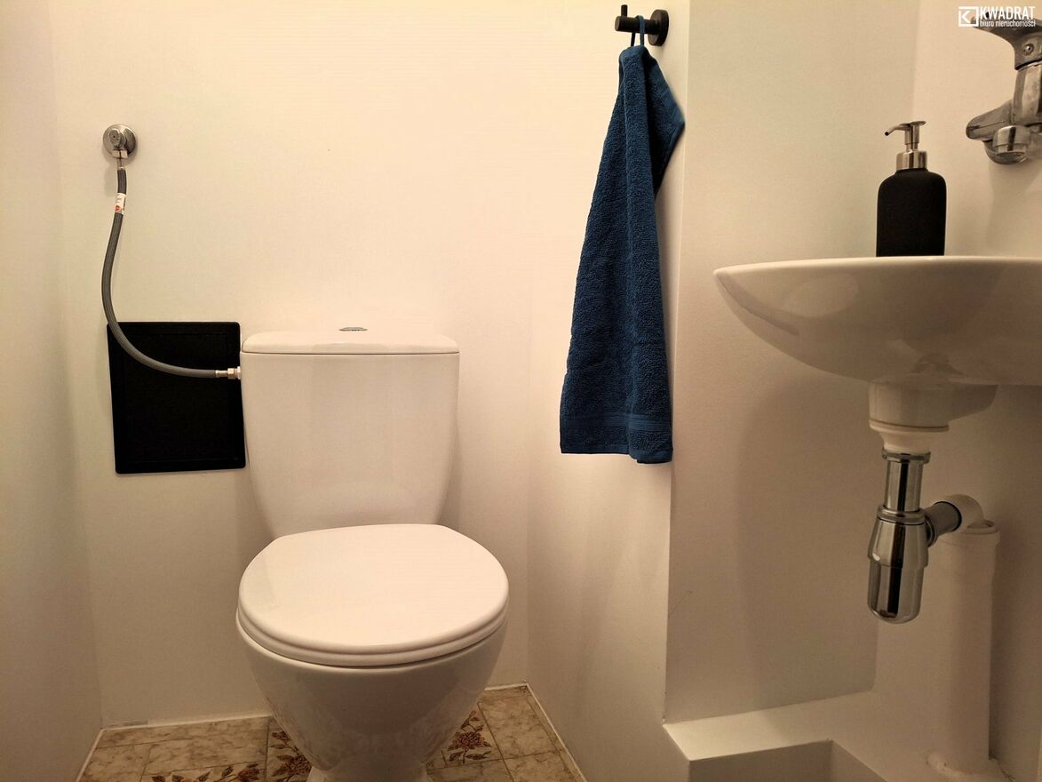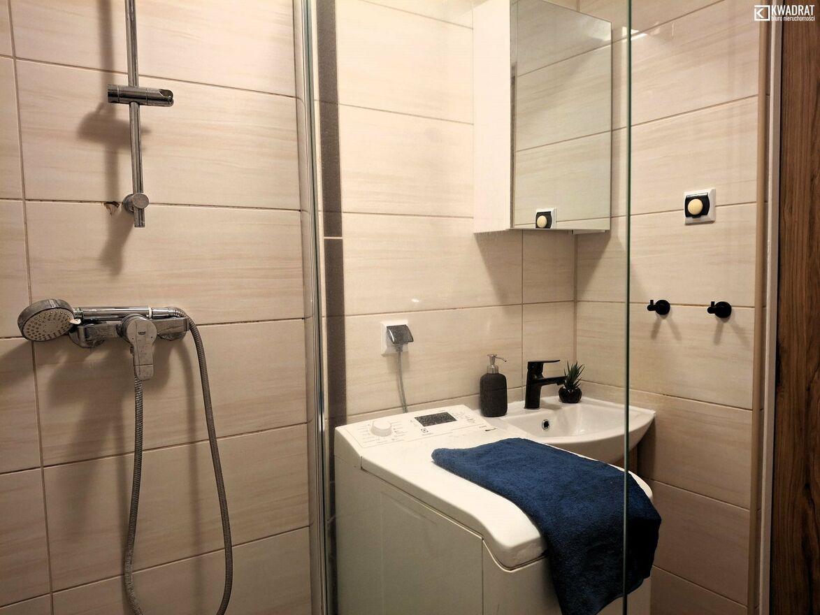 oddzielna kuchnia o pow. 8,7 m2 oraz wc i łazienka z prysznicem.