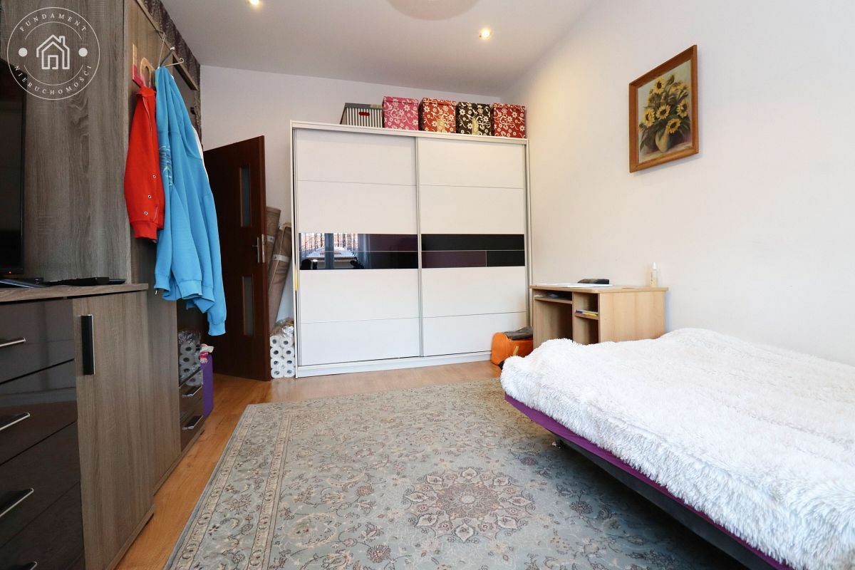 Mieszkanie wykończone w dobrym standardzie - gładzie na ścianach, panele oraz gres na podłogach, nowa instalacja elektryczna, szczelne okna PCV. Aneks kuchenny został oddzielony od salonu wyspą i wyposażony w sprzęty AGD (lodówka, piekarnik, kuchenka, okap). W salonie znajduje się wygodna sofa i szafa, a w sypialni - łóżko oraz pojemne meble. Na życzenie najemcy, po wcześniejszym uzgodnieniu, istnieje możliwość doposażenia mieszkania w dodatkowe meble lub adaptacji wnętrza - w porozumieniu z właścicielem.