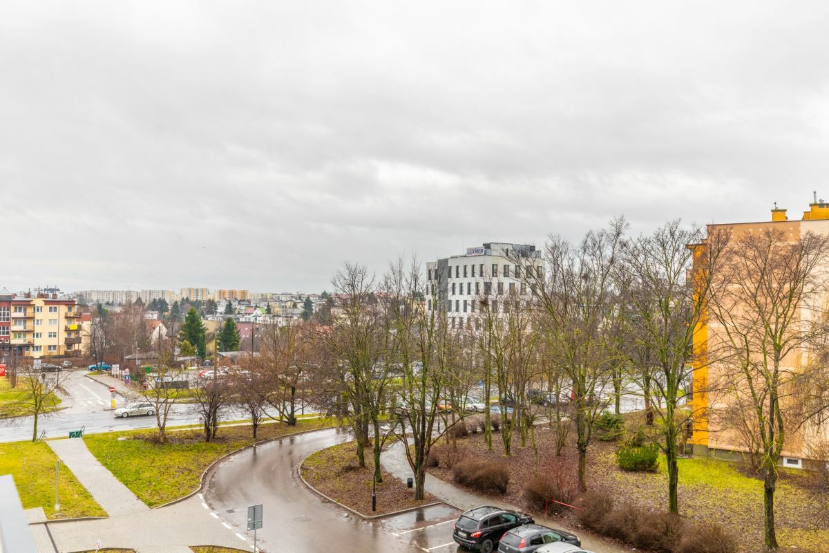Mieszkanie z zachodnią ekspozycją okien z widokiem na zielony skwer.