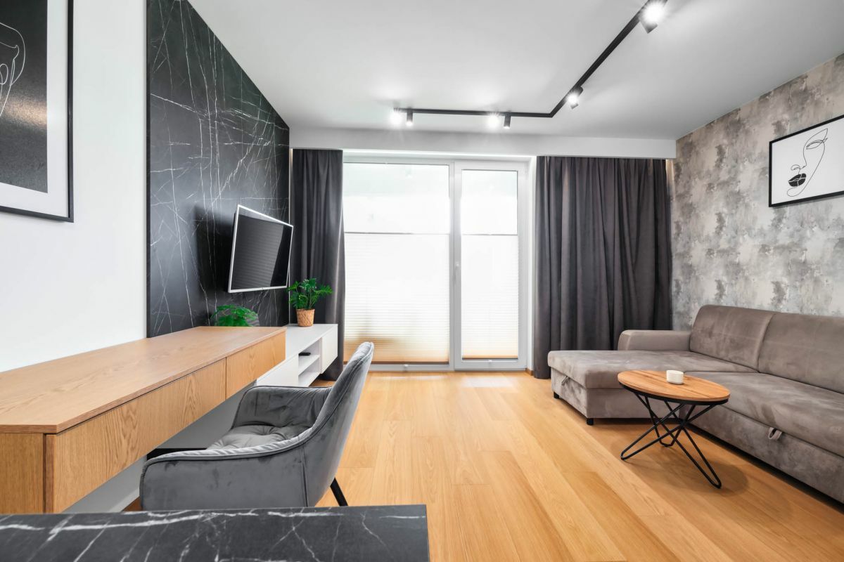 Mieszkanie jest świeżo wykończone, umeblowane i wyposażone w sprzęt AGD.