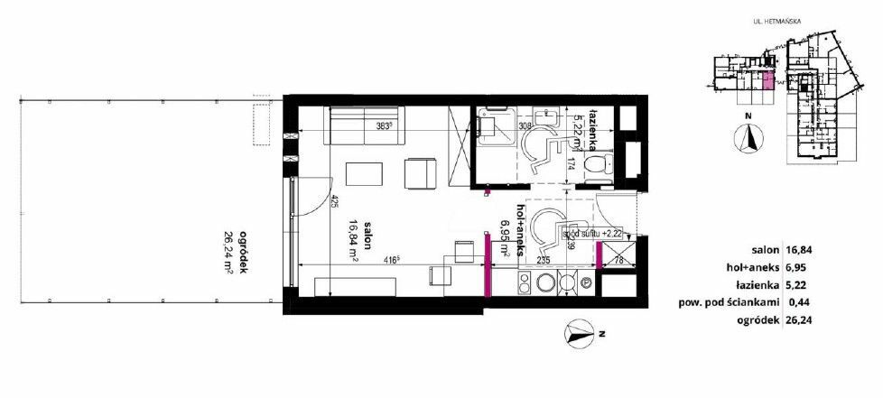 - Hol + aneks kuchenny - 6,95 m2