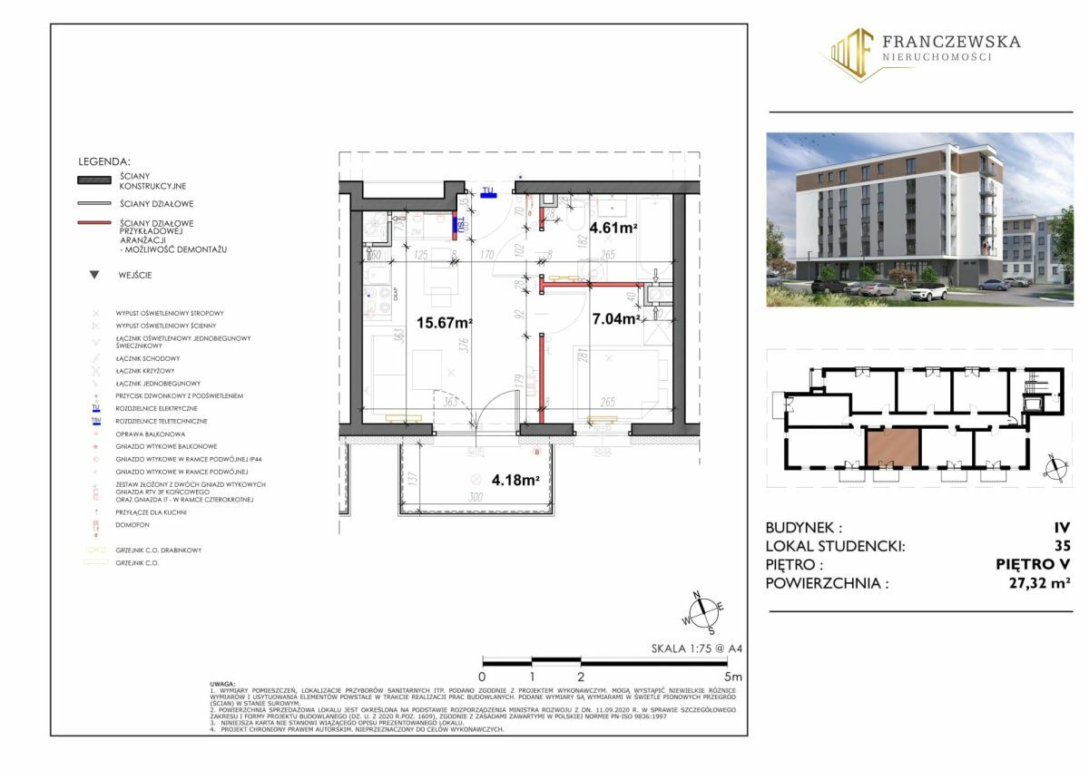 Lokal inwestycyjny o pow. 27,32 m2 na 5 p. / 5 p. okolice ul. Droga Męczenników Majdanka.Zestawienie powierzchni: