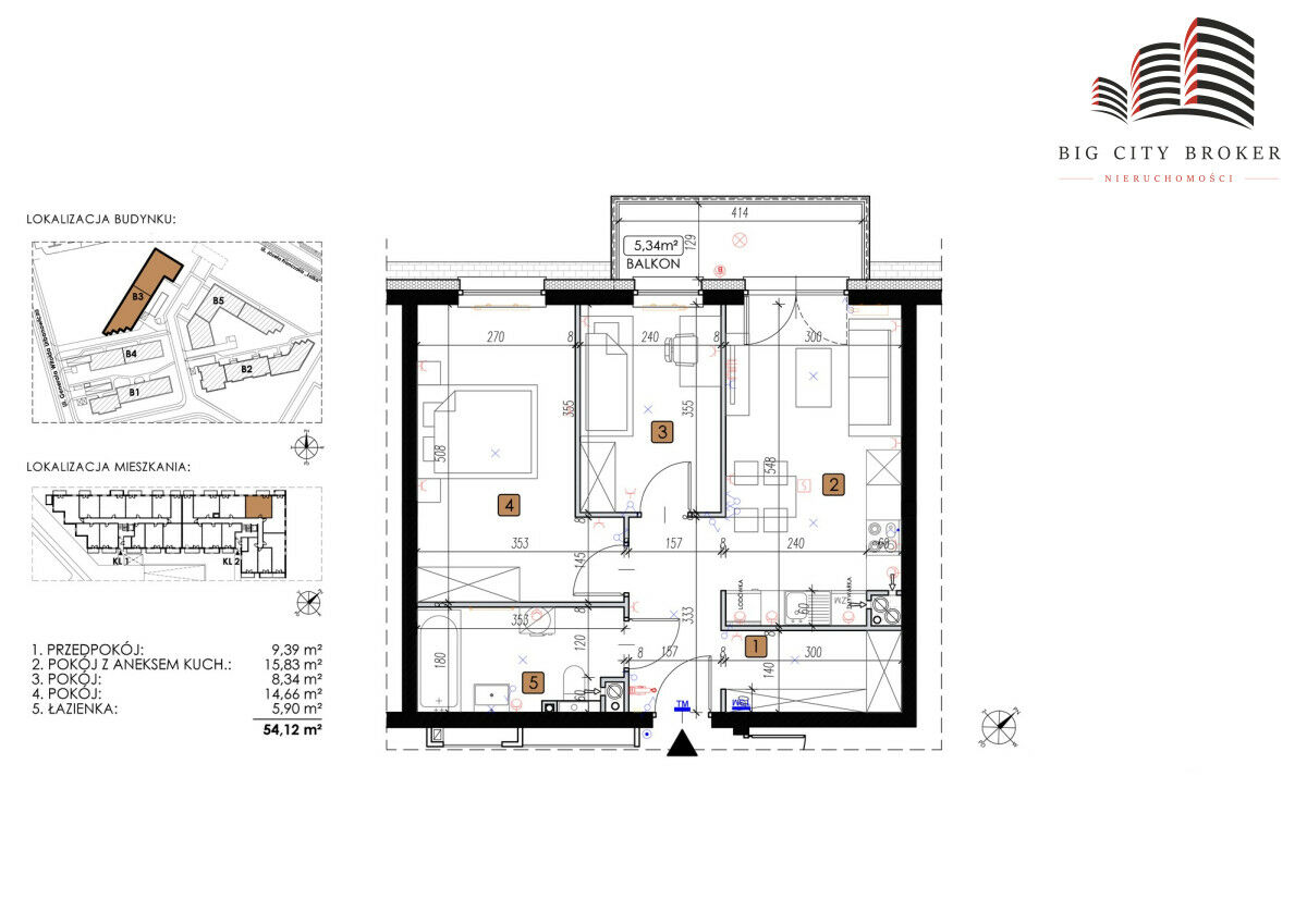 Mieszkanie M51, klatka II, blok B3
