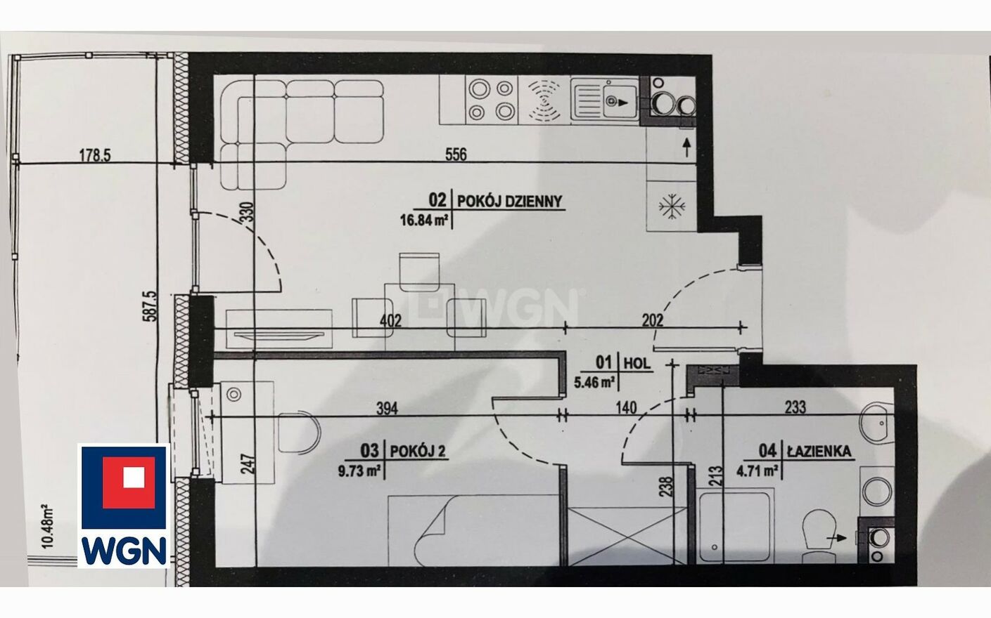 - sypialnia - 9,73 m2;