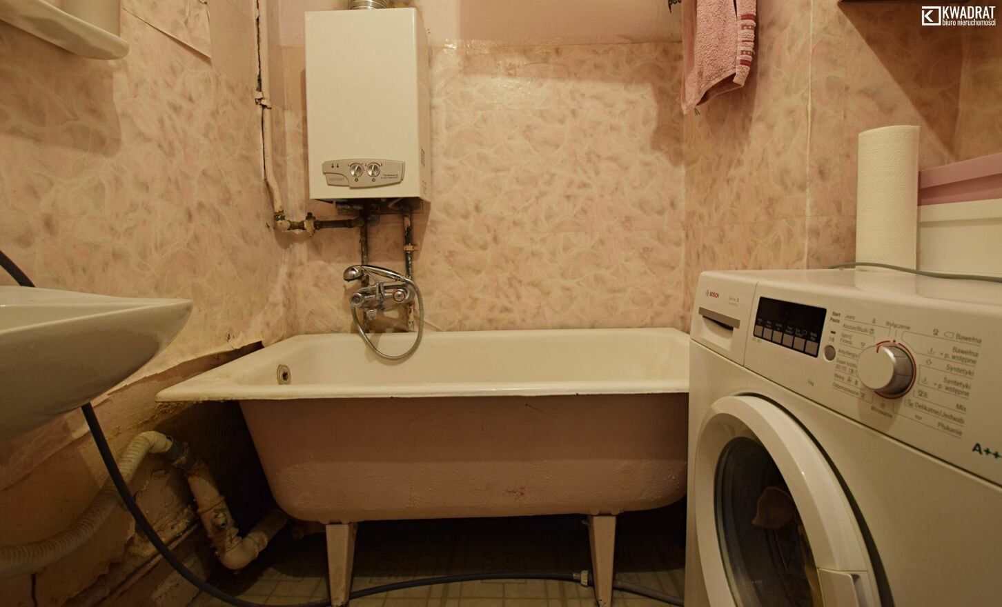Ogrzewanie i zimna woda z sieci miejskiej, ciepła woda z piecyka gazowego.