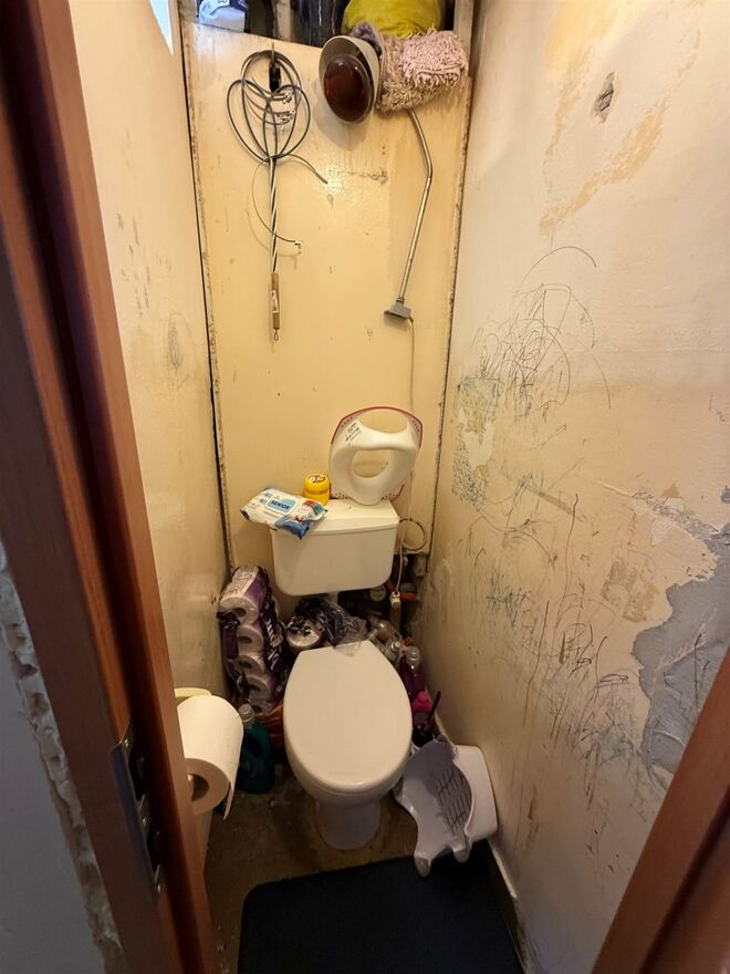 Łazienka i toaleta bez płytek, więc możliwość wykonania szybkiego remontu bez kucia.