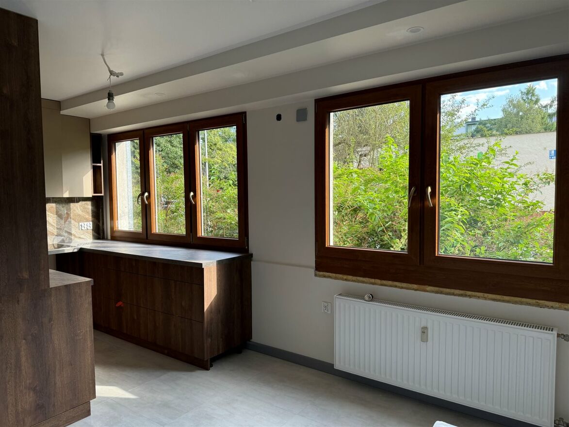 - nowe okna trzyszybowe, ukryte zawiasy, dwukolorowe - białe na zewnątrz, okleina drewnopodobna od środka, ciepło i cicho,