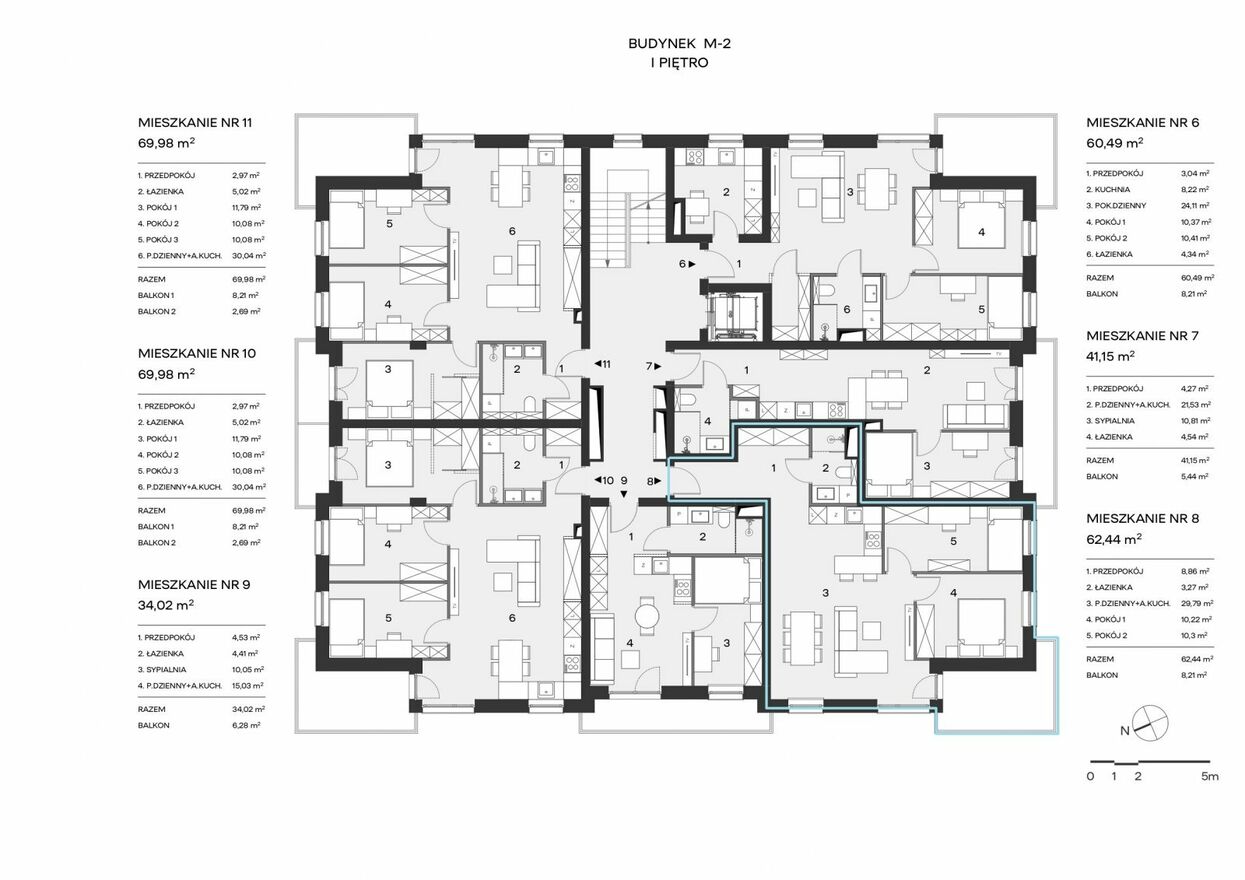 Oznaczenie mieszkania nr 8 w budynku M-2, lokalizacja w budynku wraz z rozkładem pomieszczeń ukazana w galerii zdjęć.