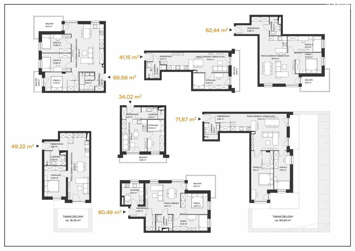 W sprzedaży aktualnie mieszkania o tym samym układzie i metrażu również w budynkach M-2 i M-3, położone na różnych piętrach. A także metraże 41 m2, 49 m2, 62 m2, 70 i 72 m2.