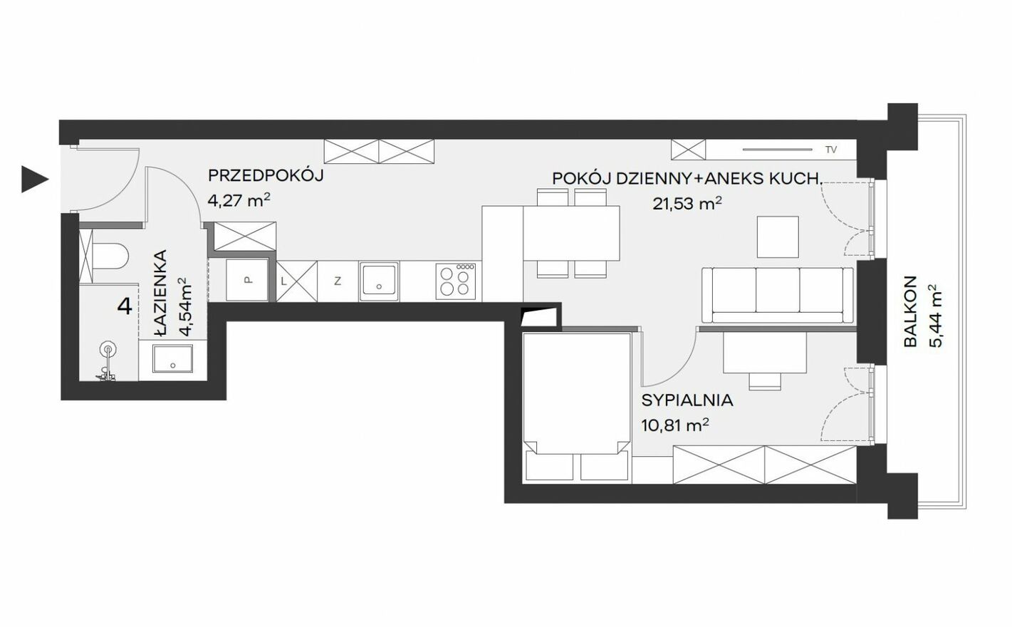 Na powierzchnię 43,09 m2 składają się docelowo: