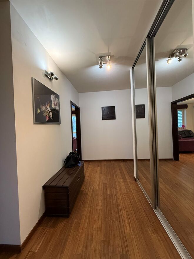 Na podłogach w całym mieszkaniu drewno egzotyczne, utrzymane w bardzo dobrym stanie.