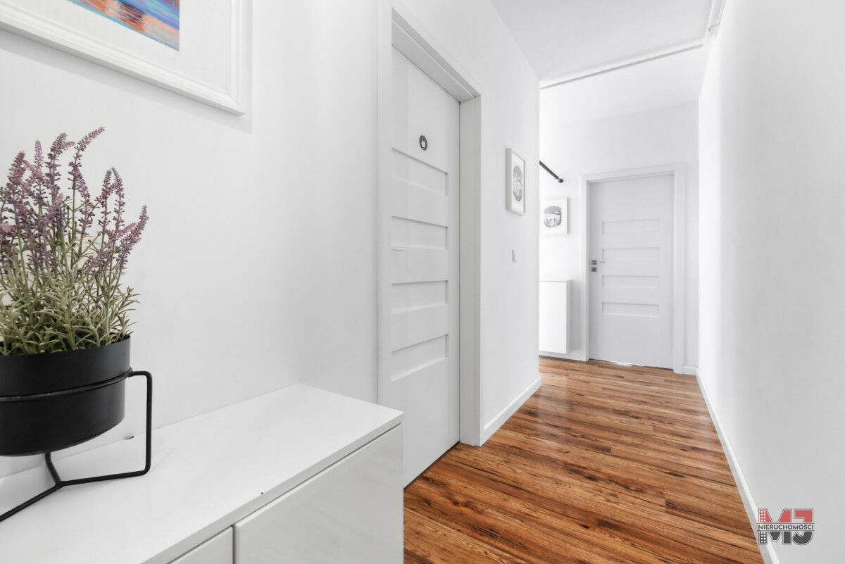 Przemyślany rozkład - przestronny salon połączony z aneksem kuchennym, trzy sypialnie oraz łazienka z oknem. Korytarz z szafami w zabudowie zapewnia dużo miejsca na przechowywanie.