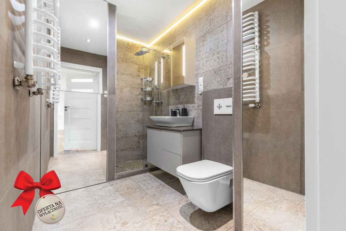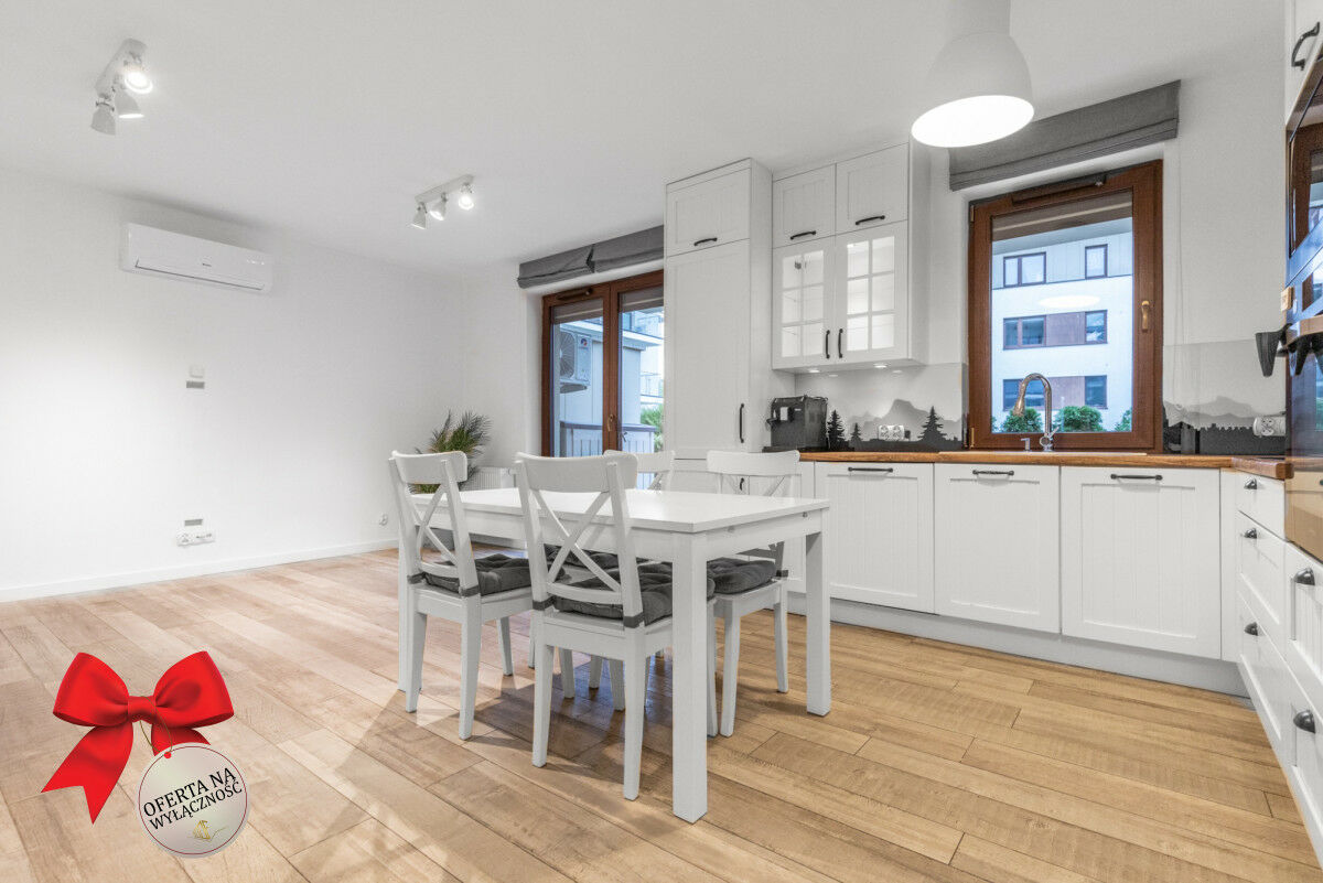 Mieszkanie gotowe do wprowadzenia, bez konieczności wykonywania dodatkowych prac. Wnętrze zaprojektowane z dbałością o szczegóły i z myślą o komforcie życia codziennego. Mieszkanie dobrze doświetlone, ekspozycja okien południowa, klimatyzowane, w oknach rolety zewnętrzne, alarm. Dwa wyjścia na taras i do ogrodu. Duża szafa wnękowa w przedpokoju, w łazience zabudowa na pralkę i suszarkę, w kuchni sprzęt AGD w zabudowie.