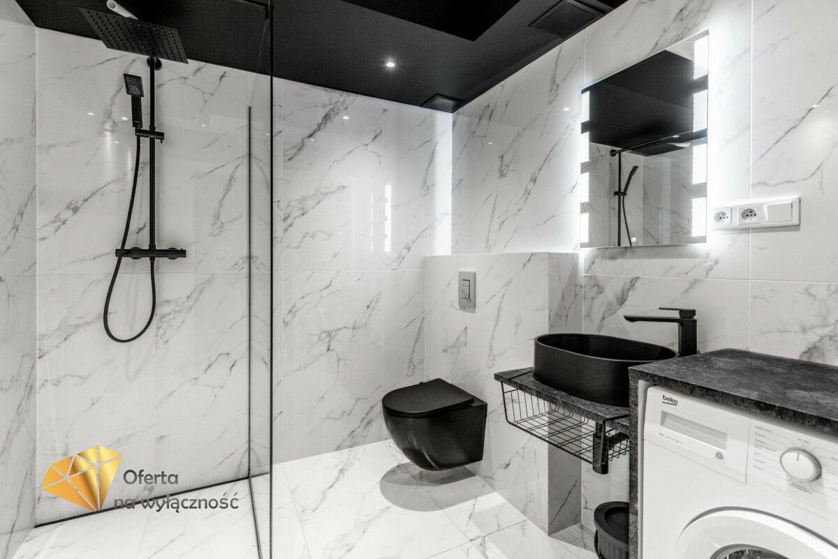 łazienka z wc - (zabudowa, prysznic, pralka),