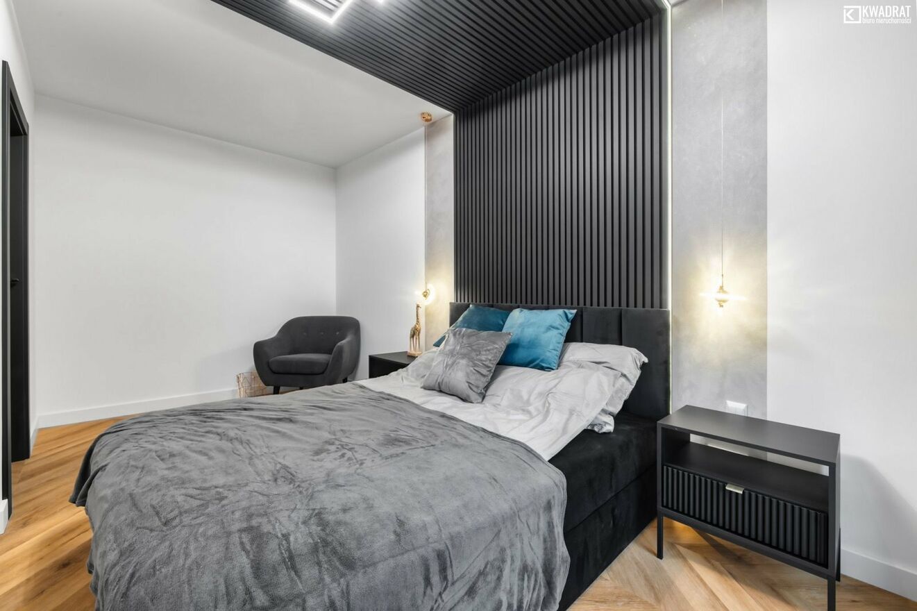 Standard wykończenia: zastosowano wysokiej jakości materiały, podłogi wyłożone panelami oraz gresem, gładzie na ścianach, okna PCV, glazura i zabudowa w kuchni (w tym piekarnik i płyta indukcyjna, okap kuchenny a także lodówka), łazienka z wanną z możliwością prysznica, gresem na ścianach, szafkami i oświetleniem LED. W mieszkaniu rozprowadzona instalacja pod klimatyzację, w pomieszczeniach ogrzewanie podłogowe z możliwością sterowania.