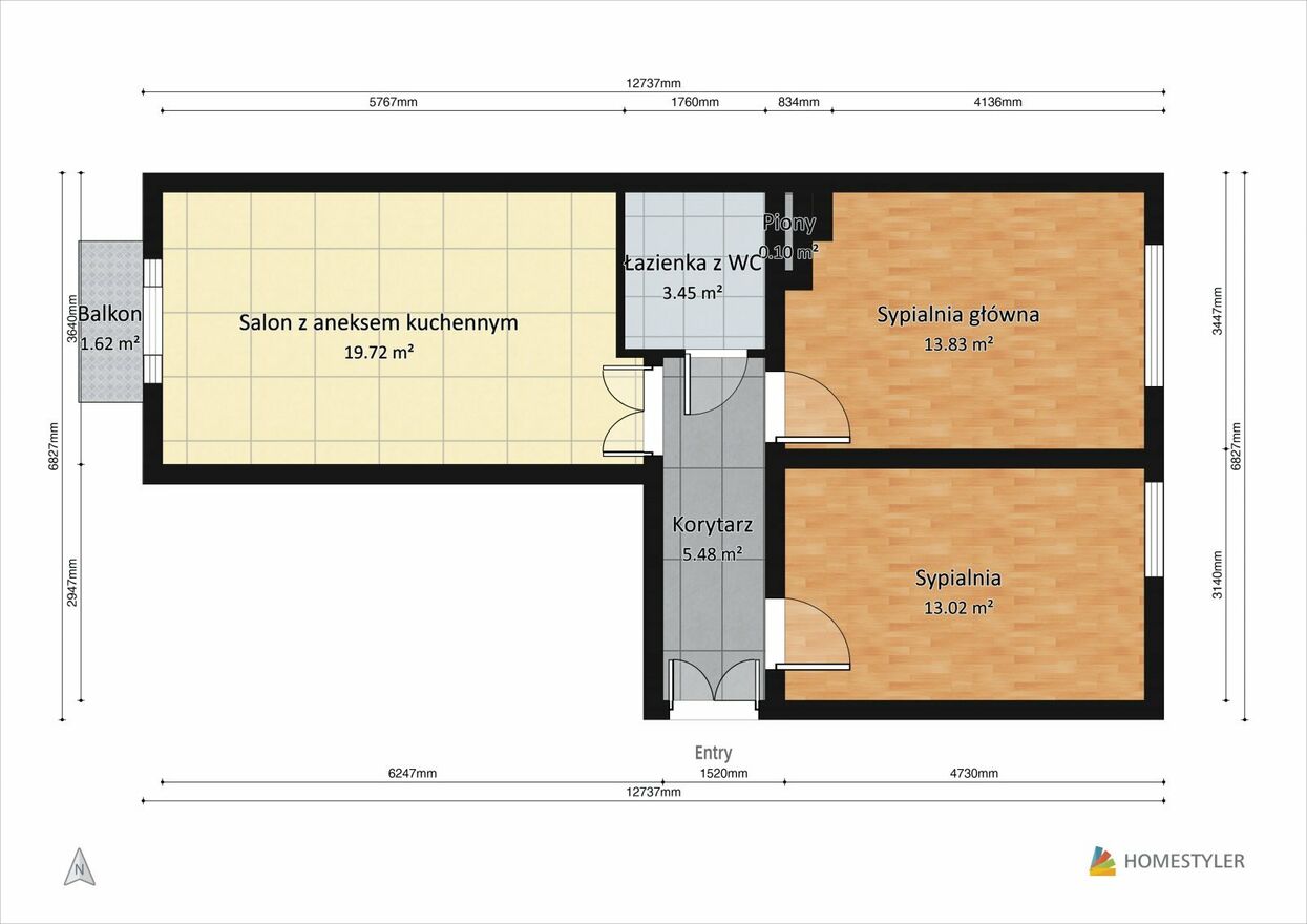 2 sypialni o pow. 13,83 m2 i 13,02 m2,