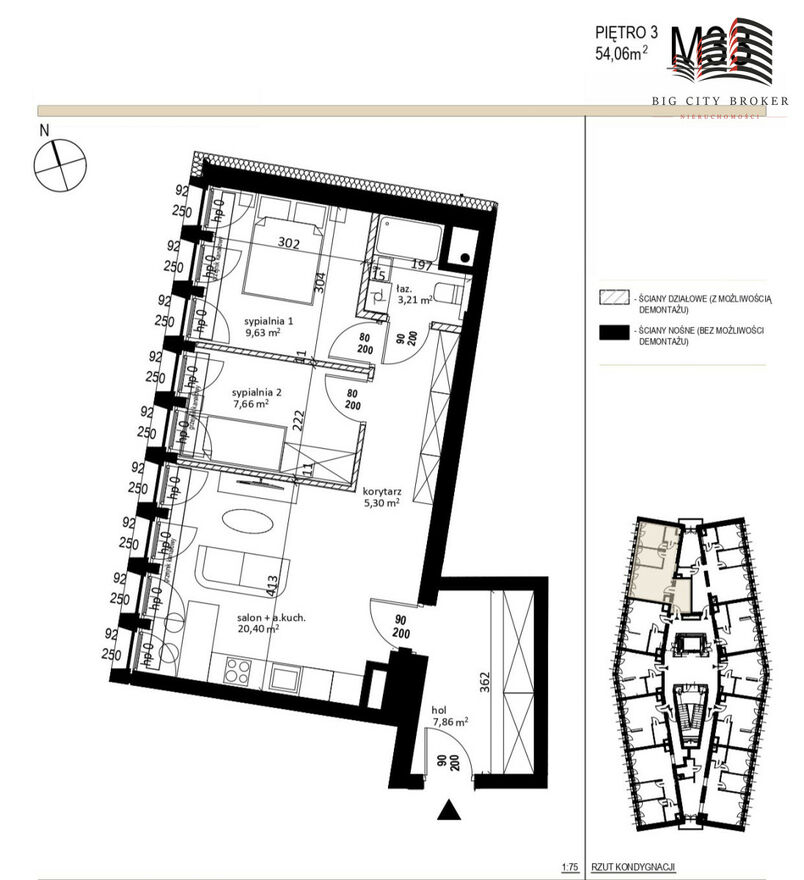 Apartament - 54,06 m² doskonale zaprojektowanej przestrzeni: