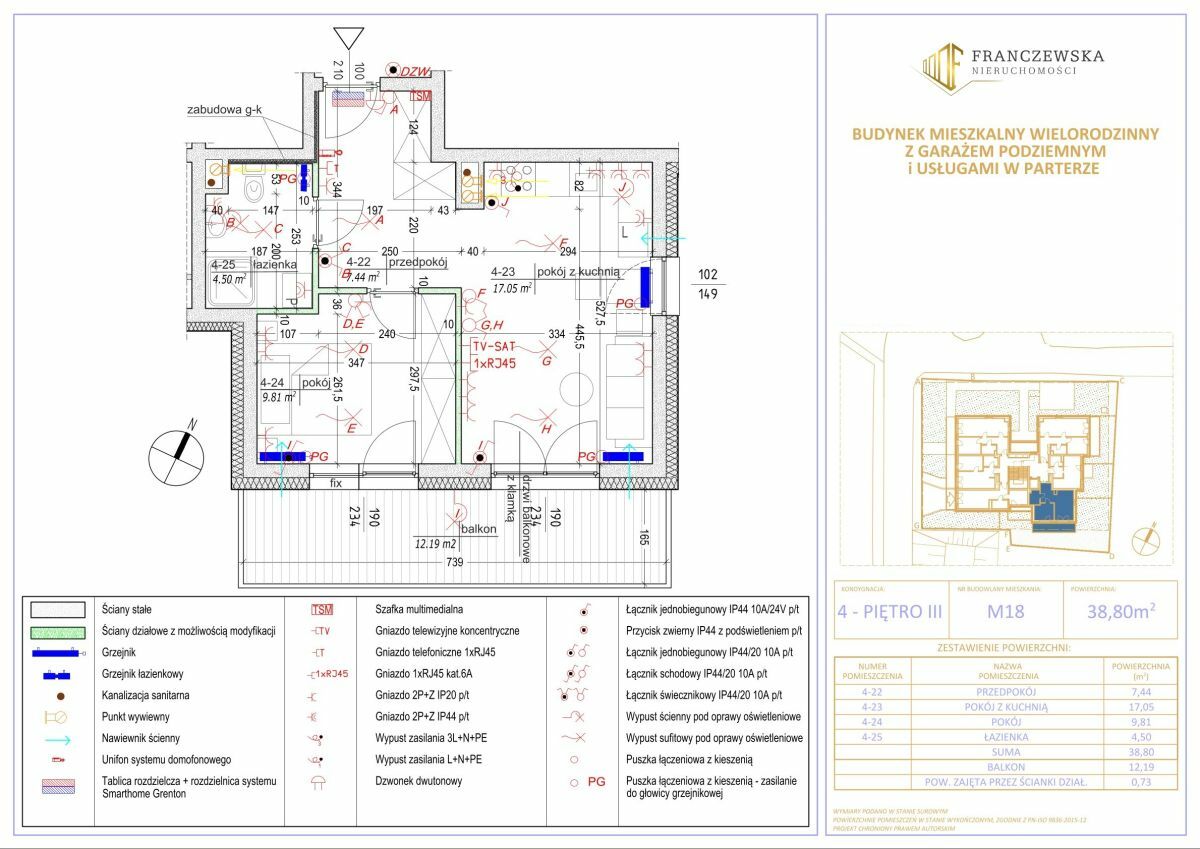 2 pokojowe mieszkanie o pow. 38,8 m2 na 3 p./3 p. blisko lubelskiego Starego Miasta.Na 38,8 m2 znajdują się: