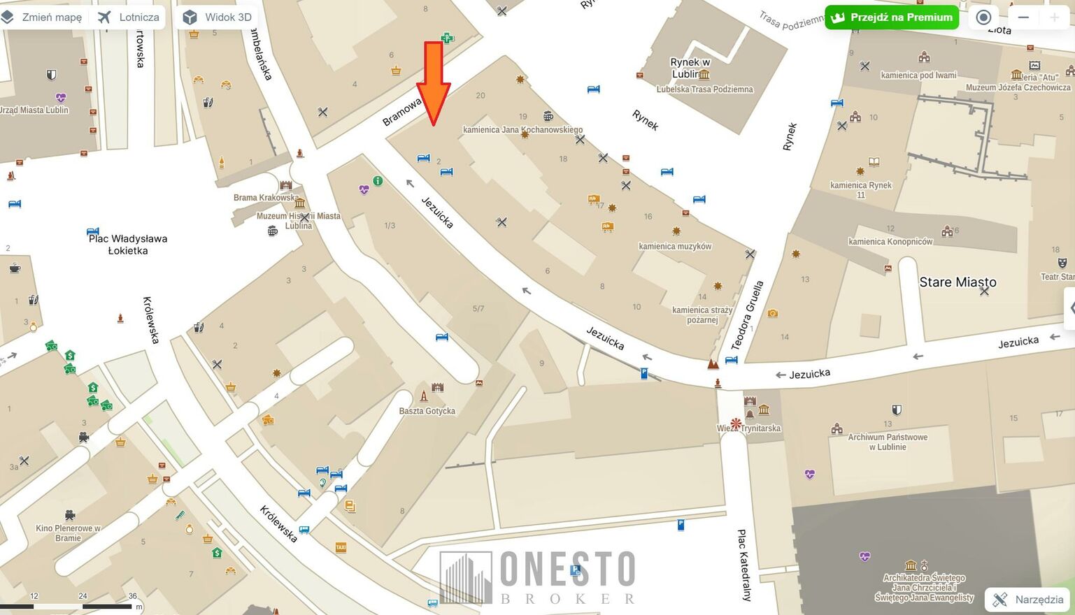 ul. Jezuicka 2 - zaledwie kilka kroków od Bramy Krakowskiej serca lubelskiej starówki. Turyści dosłownie mijają kamienicę w drodze do najważniejszych atrakcji miasta!
