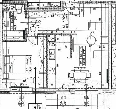 - salonu z aneksem kuchennym o powierzchni ok 24,70 mkw