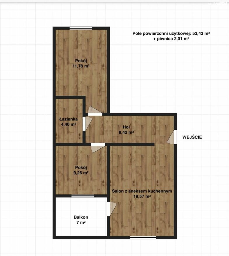 3-pokojowe mieszkanie z dużym balkonem | nowoczesne osiedle | parter | dwustronne | piwnica + miejsce postojoweNa sprzedaż komfortowe, funkcjonalne mieszkanie o powierzchni 53,43 m2, położone na parterze w niskim bloku z 2015 roku. Nieruchomość znajduje się na nowoczesnym, zamkniętym osiedlu z dostępem do terenów zielonych i pełnej infrastruktury.