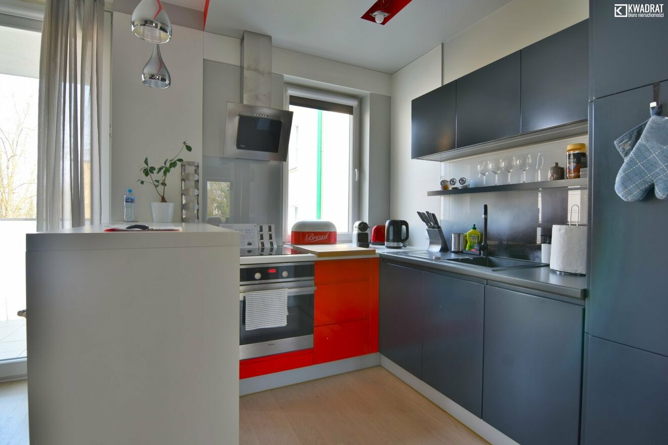 Standard wykończenia: mieszkanie wykończone z dbałością o najmniejszy szczegół - dodatki i meble w kolorze czerwonym nadają mieszkaniu wyjątkowego charakteru, wyposażone we wszystkie niezbędne sprzęty AGD (pralka, zmywarka, lodówka z zamrażarką, płyta indukcyjna, piekarnik, klimatyzacja). Drzwi antywłamaniowe z dostępem na kod, domofon. Wyposażenie, poza elementami dekoracyjnymi, może pozostać w mieszkaniu na życzenie Klienta.