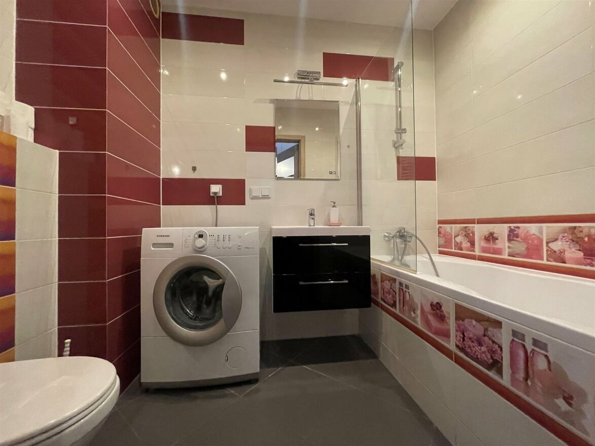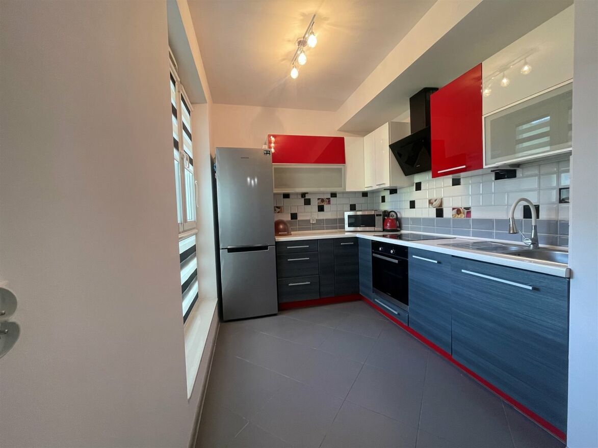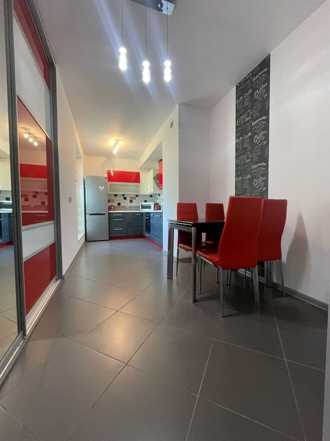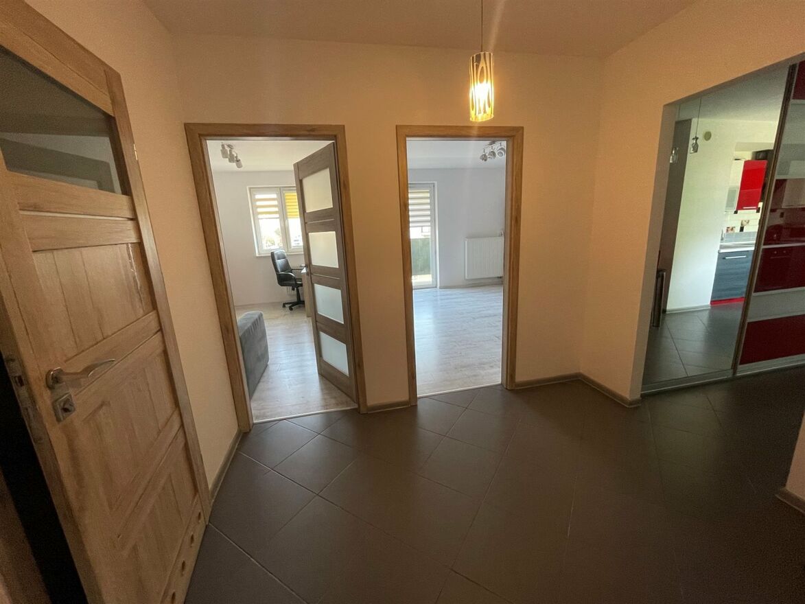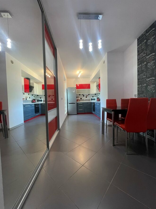 Oddzielna kuchnia z zabudową kuchenną i pełnym AGD: płyta, piekarnik, lodówka, zmywarka. Duża i pojemna szafa typu komandor z częścią na wieszaki i częścią gospodarczą.
