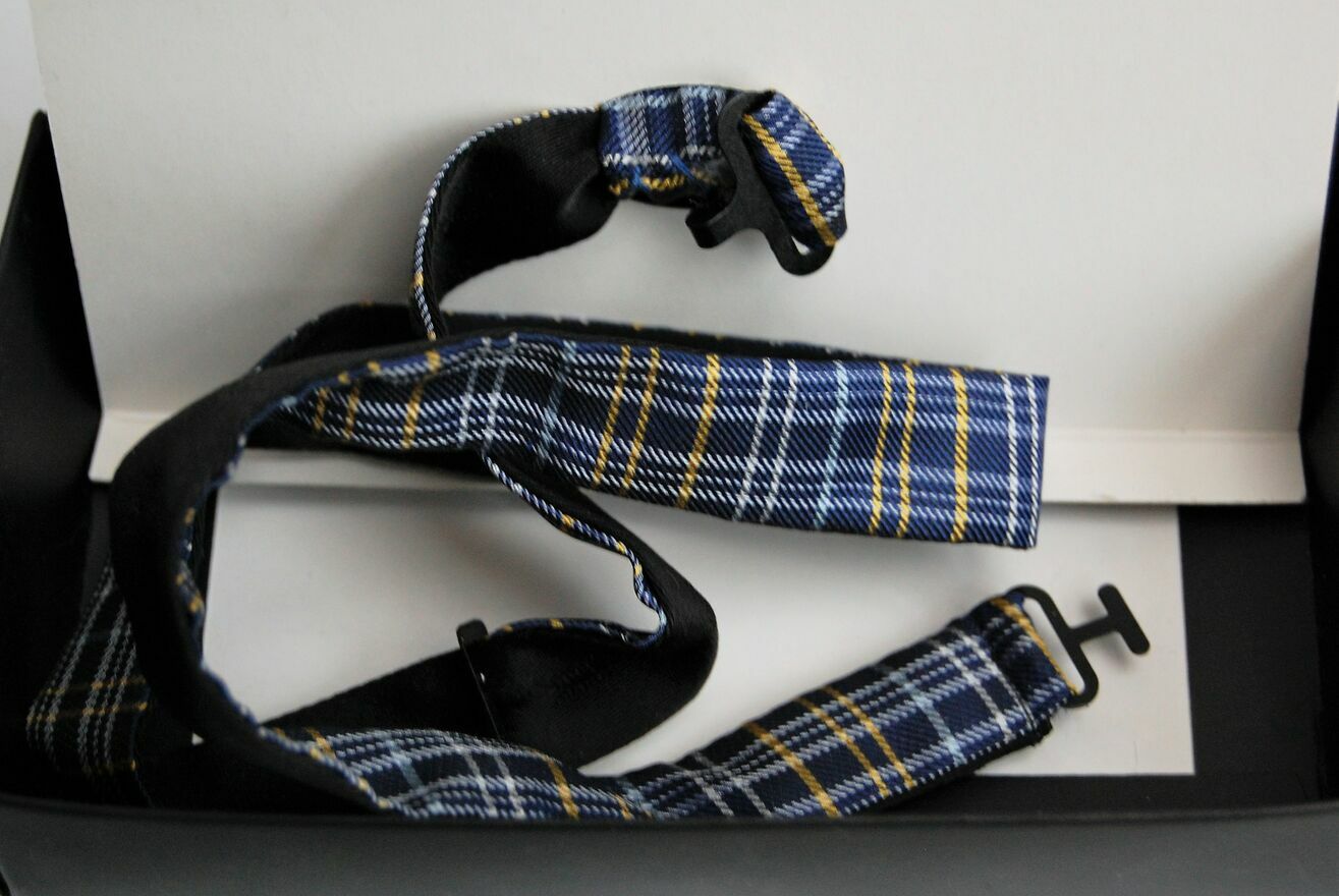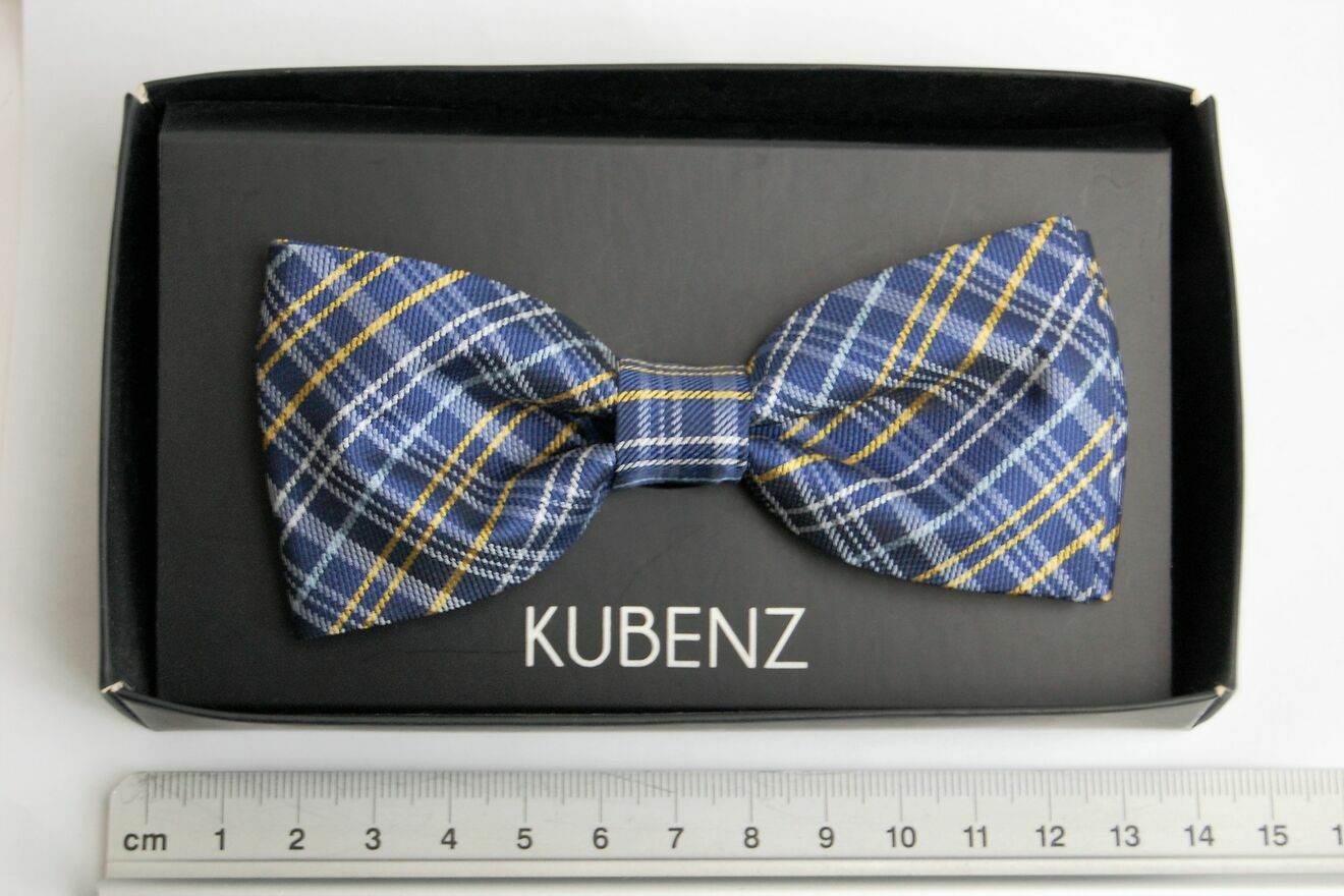 Mucha męska w kratkę, Kubenz. Kolor granatowy z żółtym i białym. Materiał: 100 % mikrofibra. Stan: nowa, w oryginalnym opakowaniu.PŁATNOŚĆ I DOSTAWA: