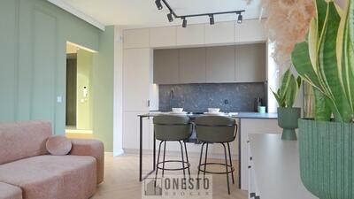 Na sprzedaż słoneczne, nowocześnie wykończone 2-pokojowe mieszkanie o powierzchni 43,46 m2 z dużym balkonem (7,76 m2), ...