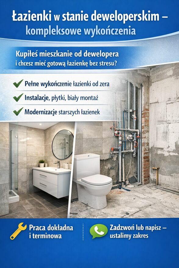 Kupiłeś mieszkanie od dewelopera i chcesz mieć gotową łazienkę bez stresu?Wykonuję:
