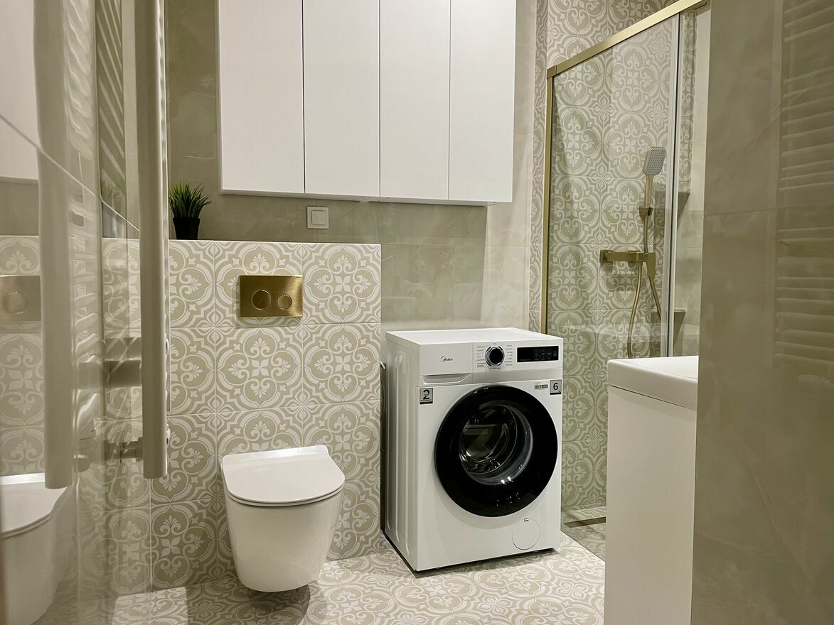 Mieszkanie jest w pełni wykończone i gotowe do zamieszkania od zaraz. Wyposażone zostało w klimatyzację, co zapewnia komfort przez cały rok, a eleganckie złote żaluzje nadają wnętrzu wyjątkowego charakteru.