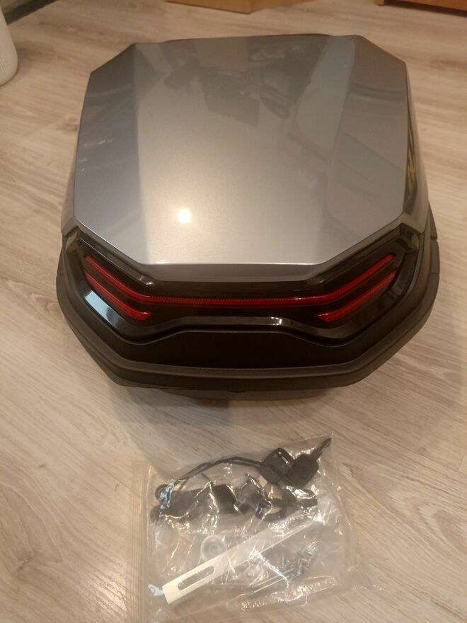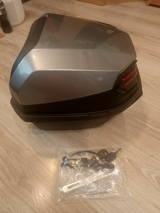 do sprzedania bardzo ładny kufer odblask kolor stali centralny 35 l zamykany do montażu na stałe FABRYCZNIE NOWYkuhajmer