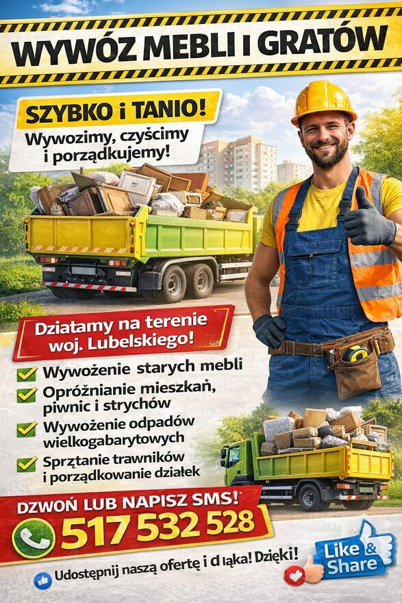 WYWÓZ MEBLI • GRUZU • OPRÓŻNIANIE MIESZKAŃMasz stare meble, graty po remoncie albo chcesz szybko opróżnić mieszkanie, piwnicę czy strych?