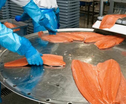 - układanie ryb na linii produkcyjnej,