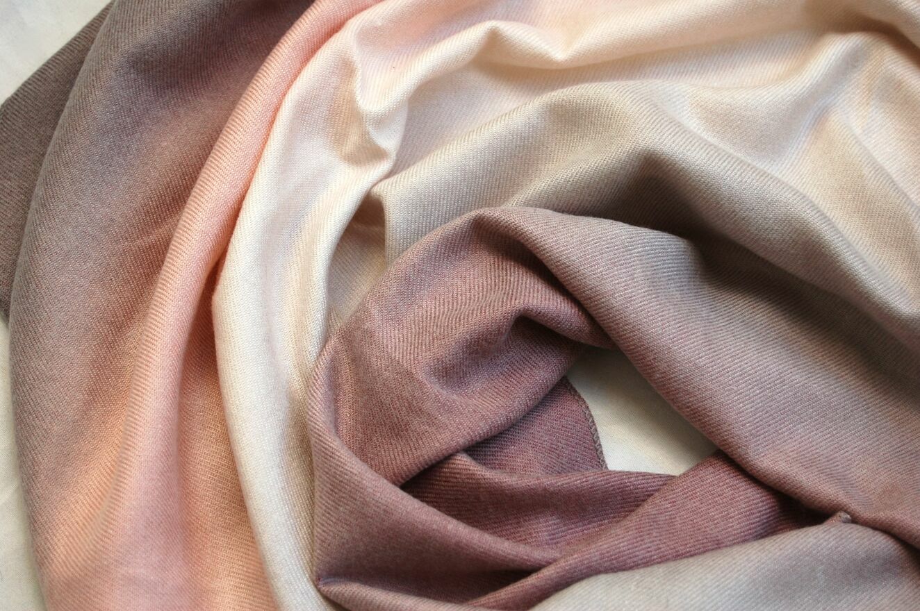 Pastelowy szal damski, kremowo-beżowo-szaro-różowy, kaszmir