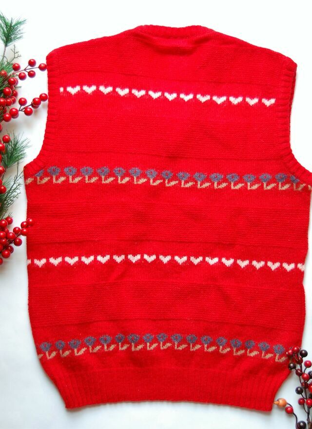 Pulower skandynawski vintage czerwony bezrękawnik S/M moher