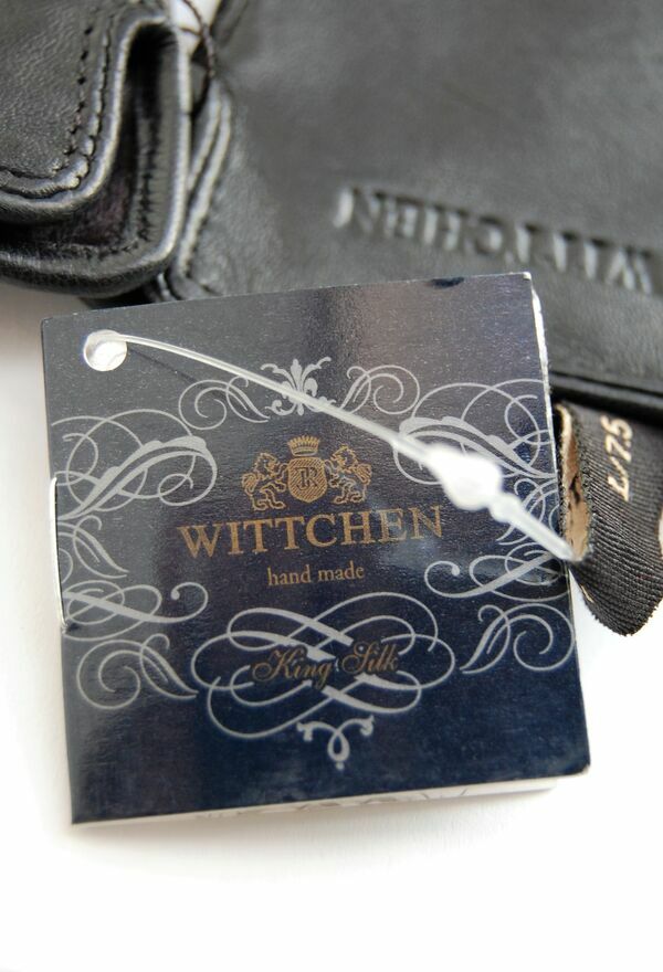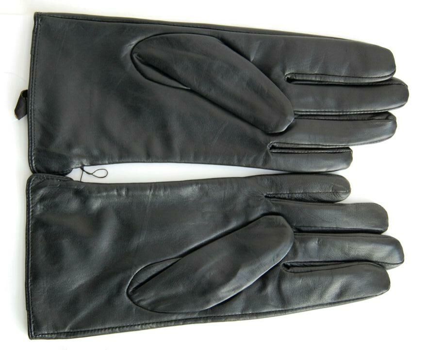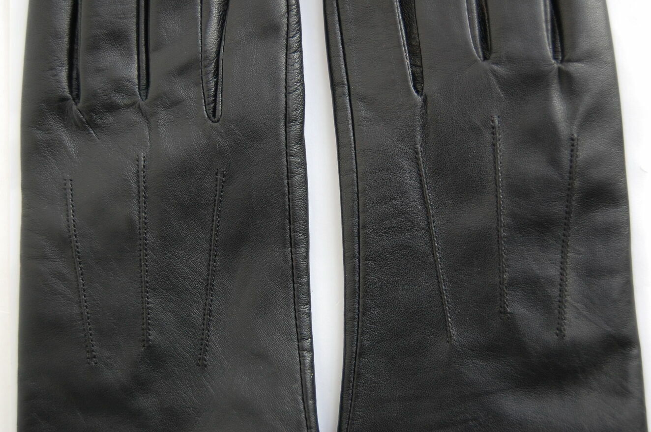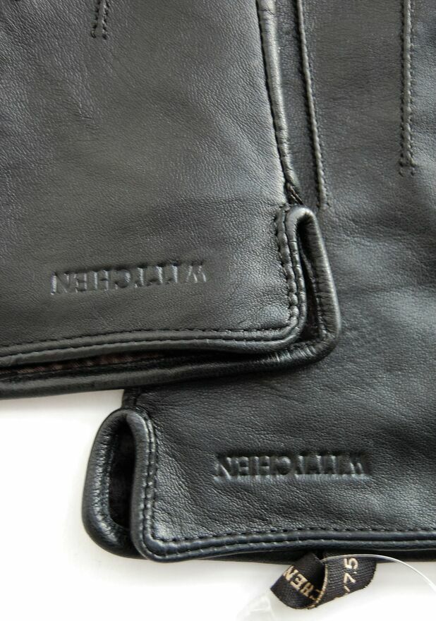 Eleganckie rękawiczki damskie, ocieplane marki Wittchen. Rozmiar L. Rękawiczki są wykonane z najwyższej jakości skóry owczej w kolorze czarnym. Skóra jest miękka i delikatna w dotyku, połyskująca. Grzebiet zdobią klasyczne, potrójne przeszycia. Podszewka z syntetycznego futerka ma kolor czarny. Stan: nowe.Wymiary (długość całkowita x szerokość w najszerszym miejscu x długość środkowego palca): 24,5 x 9,3 x 8,1 (cm).