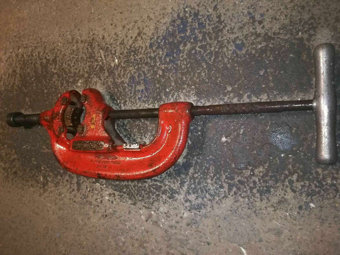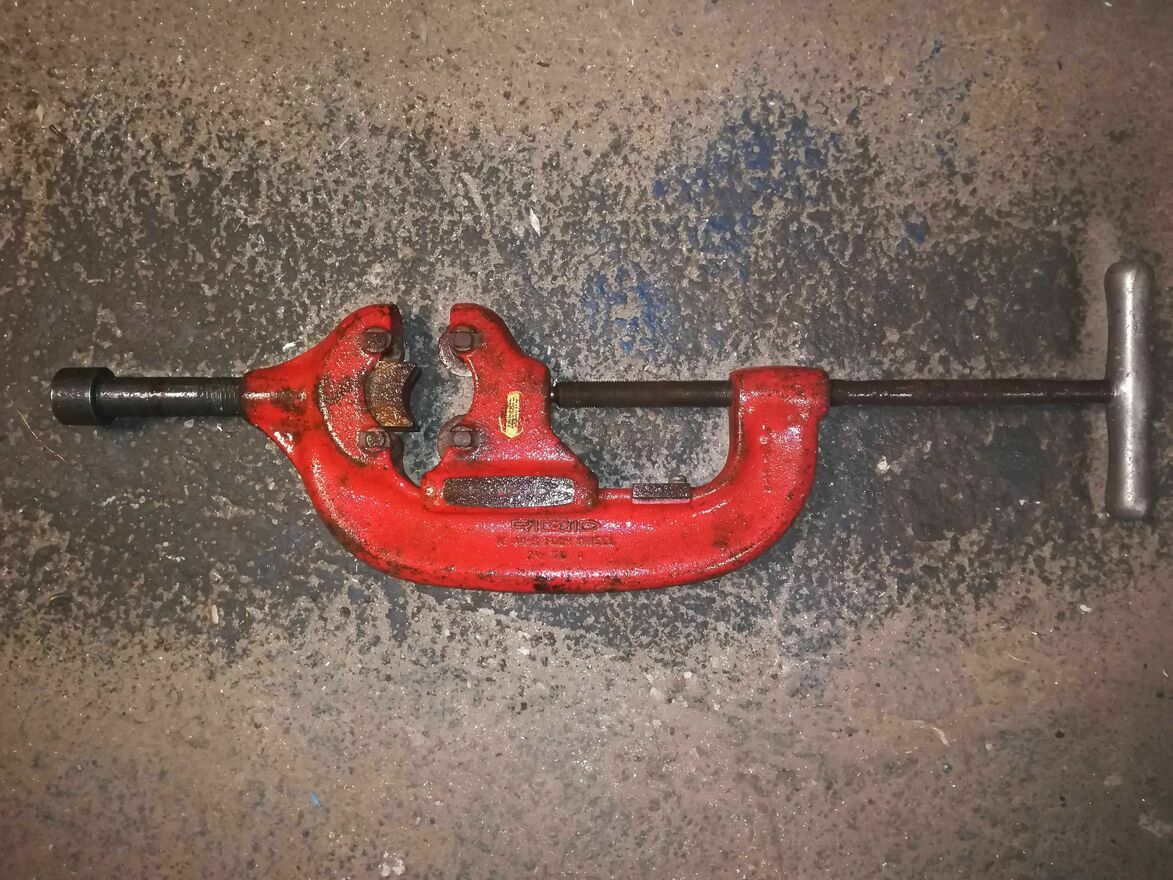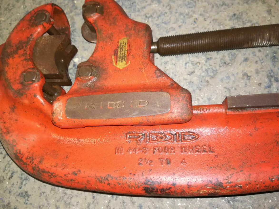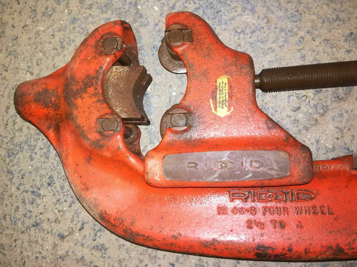 RIDGID Obcinak do rur z 4 kółkami 44-S 32880.Model z USA.Sprzedaje jako uszkodzone ponieważ dwa kółka do wymiany a dwóch nie ma.Stan jak na foto.Dane techniczne:Ilość kółek tnących: 4