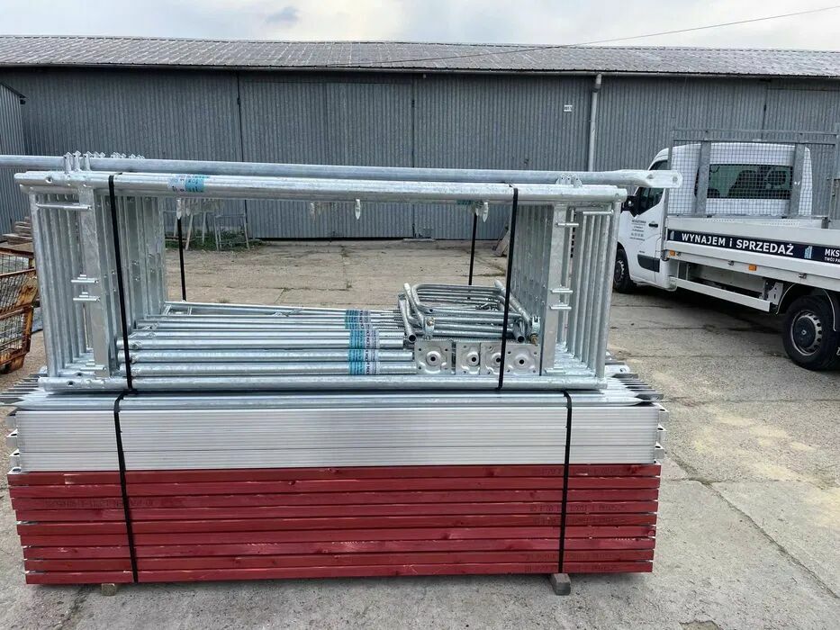 Firma MKS Rusztowania Sp. z o.o.oferuje zestaw nowego rusztowania ramowego - elewacyjnego z podestem drewnianym