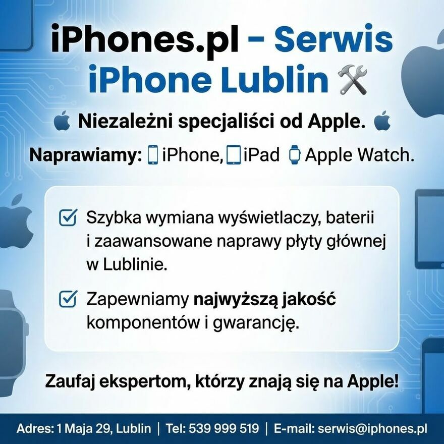 iPhones.pl – Specjalistyczny Serwis iPhone LublinMasz problem ze swoim iPhone'em, iPadem lub Apple Watchem? Szukasz sprawdzonego i doświadczonego Serwisu iPhone w Lublinie, który doskonale zna ekosystem Apple? iPhones.pl to niezależny serwis, który od lat specjalizuje się w naprawie urządzeń tej marki. Oferujemy usługi na najwyższym poziomie, często przewyższające standardy rynkowe.
